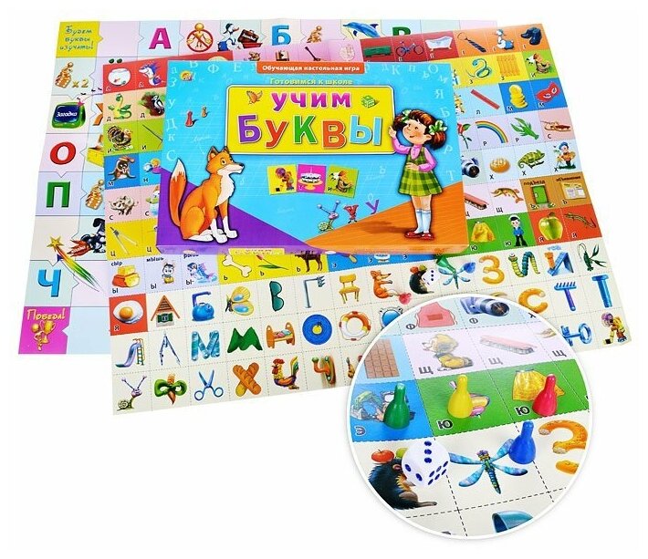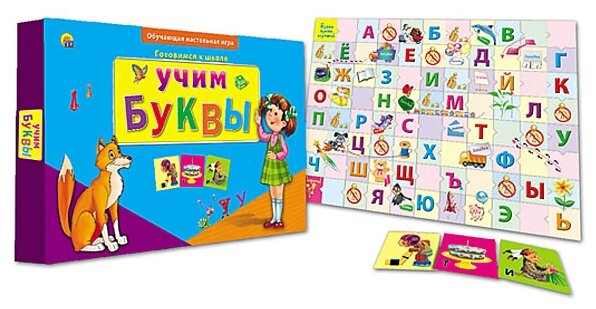 Настольная игра Учим буквы – бесценный помощник для ребёнка, который начинает учить буквы. Простые правила, красочное оформление порадуют ребёнка и сделают процесс обучения азбуке увлекательным и интересным. В коробке находятся игровое поле и 140 иллюстрированных карточек. В игре могут принимать участие от 2 до 4 игроков дошкольного возраста.