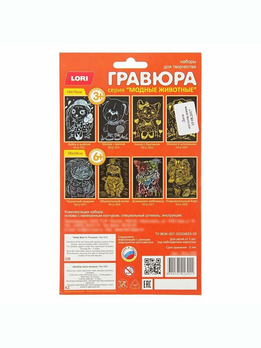 | Наименование модели | Набор для детского творчества Гравюра малая Мишка в штанишках эффект золото Мгр-004 Lori |