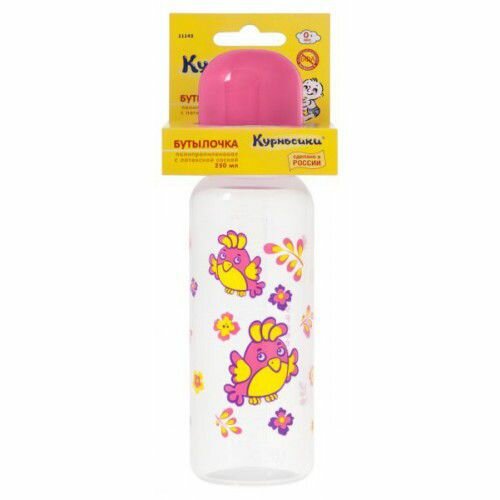 "Бутылочка Курносики ""Мои любимые птички"" с латексной соской 250 мл. имеет классическую форму и понятную мерную шкалу, соответствующую объему. Бутылочка произведена из полипропилена - термостойкого небьющегося пластика, не вступающего в химическую реакцию с молоком и не выделяющего вредных веществ при стерилизации. Бутылочку прямой формы удобно использовать и легко мыть. Можно мыть в посудомоечной машине и стерилизовать в СВЧ-печи. Бутылочки выполнены в голубом, красном и розовом цвете с изображением сказочных героев: любимых птичек малыша. Комплектуются латексной соской и герметичным колпачком, предохраняющим содержимое от проливания. Не разогревайте бутылочку с навинченной соской, тщательно перемешивайте содержимое бутылочки после разогрева."