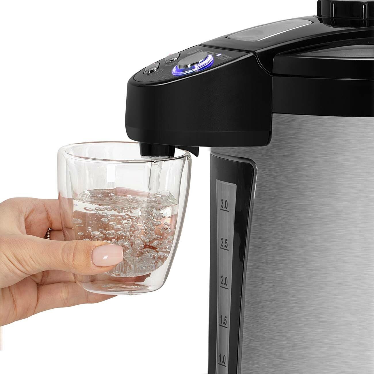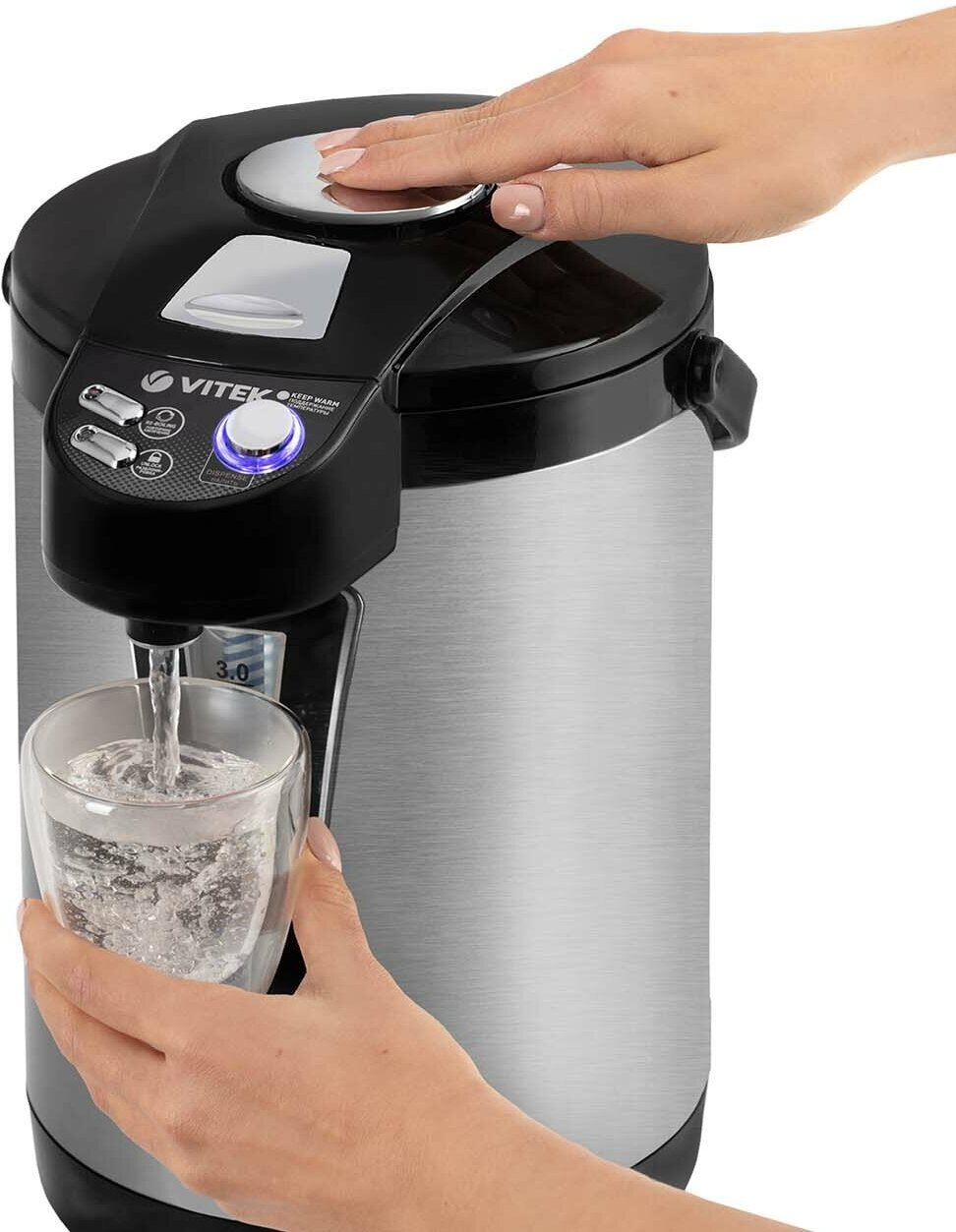 Стильный, вместительный и надежный термопот BK станет идеальным дополнением вашей кухни. Вам не придется постоянно греть воду, ведь данное устройство по необходимости в автоматическом режиме подогревает воду до нужной температуры! Термопот выполнен из нержавеющей стали, что делает прибор надежным и экологичным. Устройство удобно в использовании. Чтобы налить воду в чашку, вы можете воспользоваться тремя способами, что делает «общение» с прибором приятным и комфортным. Термопот выполнен в небольших габаритах, что сэкономит место на Вашей кухне.
