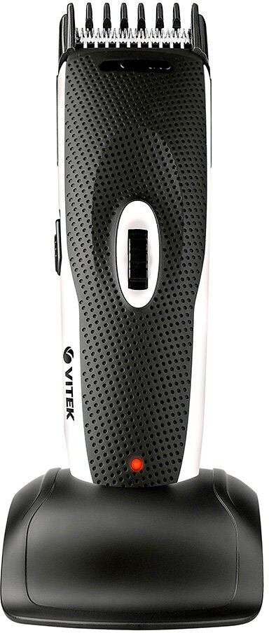 Если Вы цените в технике мобильность, то вам наверняка понравится набор для стрижки VITEK 1355. Действительно, после зарядки от сети он способен до 40 минут работать на аккумуляторах. О заряде аккумулятора вы легко можете узнать, глядя на индикатор. Работая с ним, даже неопытный парикмахер сможет подравнять волосы до нужной длины. Две специальные насадки, входящие в набор для стрижки VITEK , сделают работу более комфортной.