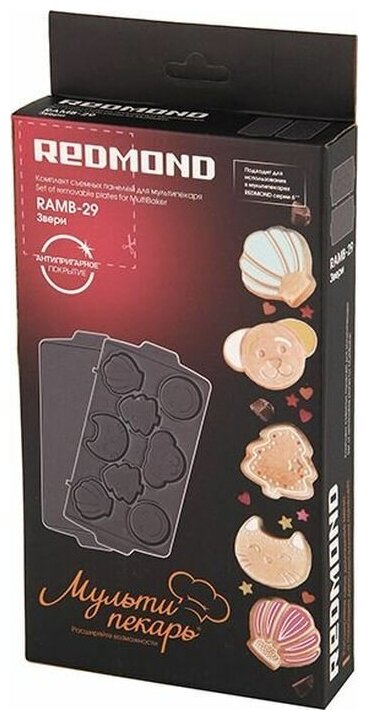 Универсальные съемные панели для любого Мультипекаря REDMOND серии 6! Позволят вам приготовить натуральную выпечку без консервантов в виде симпатичных зверят, елочки, смайлов и ракушек, чтобы потом расписать ее глазурью или украсить любым другим способом по вашему вкусу. Панели изготовлены из прочного металла, они долговечны и просты в уходе. Антипригарное покрытие позволяет готовить без масла.