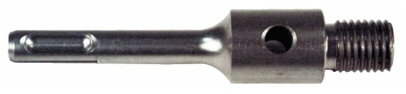 Хвостовик для полой сверлильной твердосплавной коронки SDS-Plus. В центре тела хвостовика имеется резьбовое отверстие для зажима с помощью резьбовой пробки-втулки с шестигранной шляпкой направляющего сверла-бура, для чего в комплект поставки входит ключ торцевой с наружным шестигранником. Длина — 105 мм.