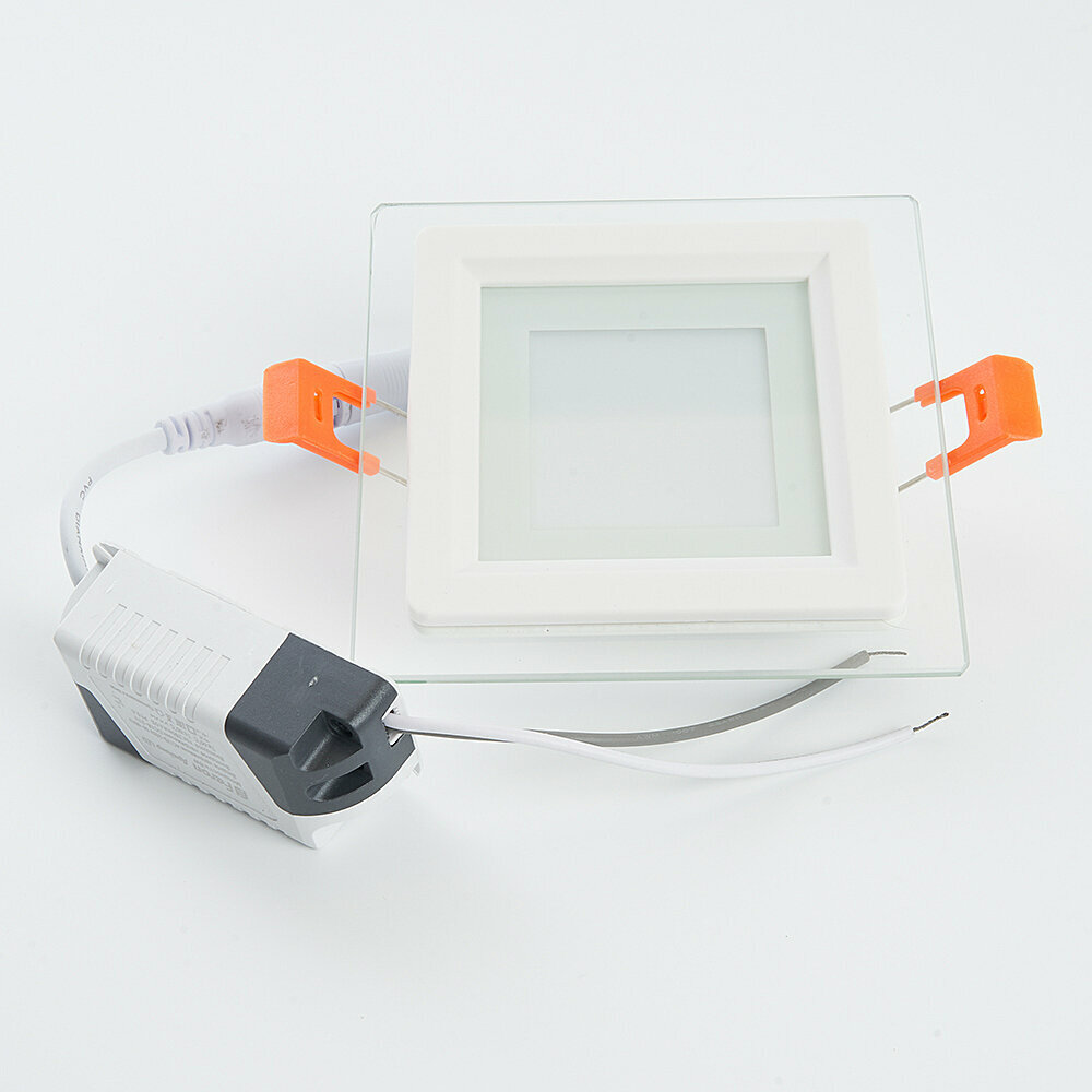 Светильники Feron AL2111 6W 4000K купил в начале 2016 года, 10 штук для установки в натяжной потолок в гостиной. Понравился минималистичный дизайн и квадратная форма. Тогда все ставили круглые светодиодные светильники, а квадратные были мало у кого. Но квадратная форма с прозрачным стеклом по краю создали сложности при монтаже. Установщики натяжного потолка по неопытности неправильно подобрали размер термокольца под светильники и через стекло по краю в некоторых местах просматривались щели. Проблему решил матованием стекла белой краской с обратной стороны. У сестры точно такие же светильники другие установщики поставили без проблем.