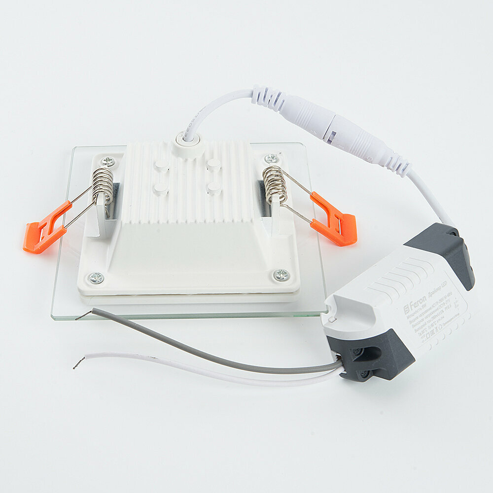 Светильник встраиваемый светодиодный, декоративный (ДВО) FERON AL2111, 6W 4000К (белый), 175-265V, 480Lm, IP20, угол рассеивания 110°, цвет белый, корпус алюминий, рассеиватель стекло, 100*100*35 мм, монтажн.отв. 75*75 мм.. Оригинальный дизайн светильника AL2111 артикул идеально дополнит современный интерьер торговых залов и офисных помещений. Светильник поможет значительно сократить эксплуатационные затраты не только за счёт экономии электричества, но и за счёт продолжительного срока службы без дополнительного обслуживания. Преимущества: - Экономия до 90% электроэнергии - Отсутствие пульсации - Отсутствие высокой температуры на корпусе - Равномерный яркий свет - Надежная фиксация светильника - Удобное подключение проводов питания - Драйвер в комплекте - Гарантия 1 год * Наличие в драйвере светильника фильтра для подавления электромагнитных помех предотвращает негативное воздействие светильника на работу средств связи, теле- и радиоприемников, устройств пожарной сигнализации.