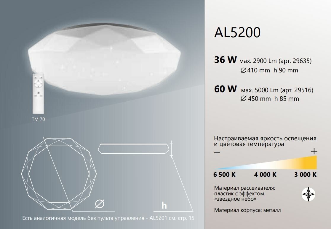 - Накладной светодиодный светильник Feron AL5001 STARLIGHT 60W