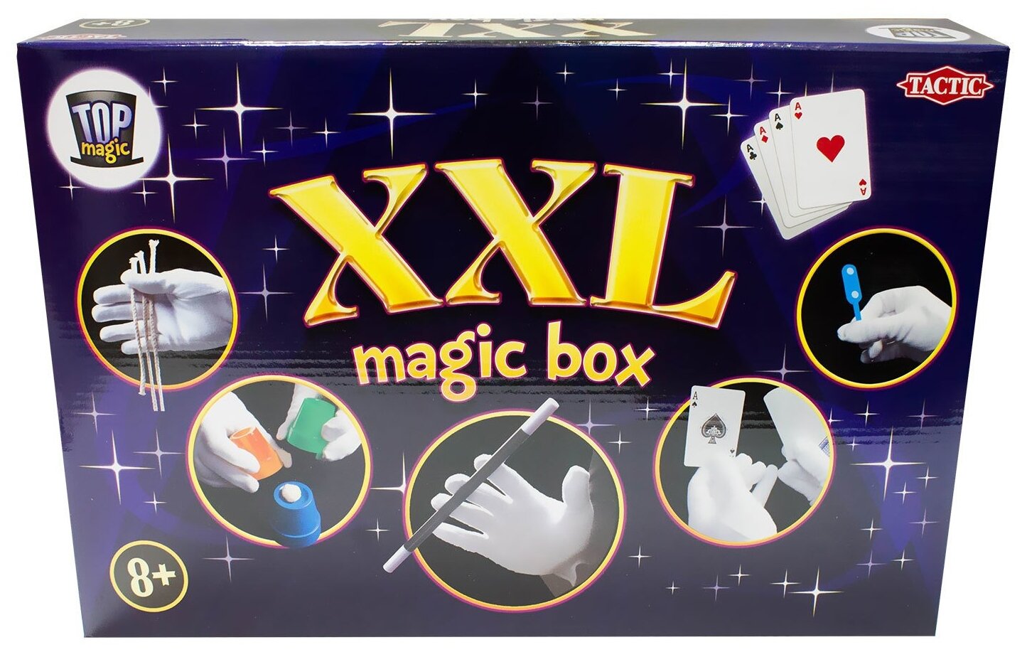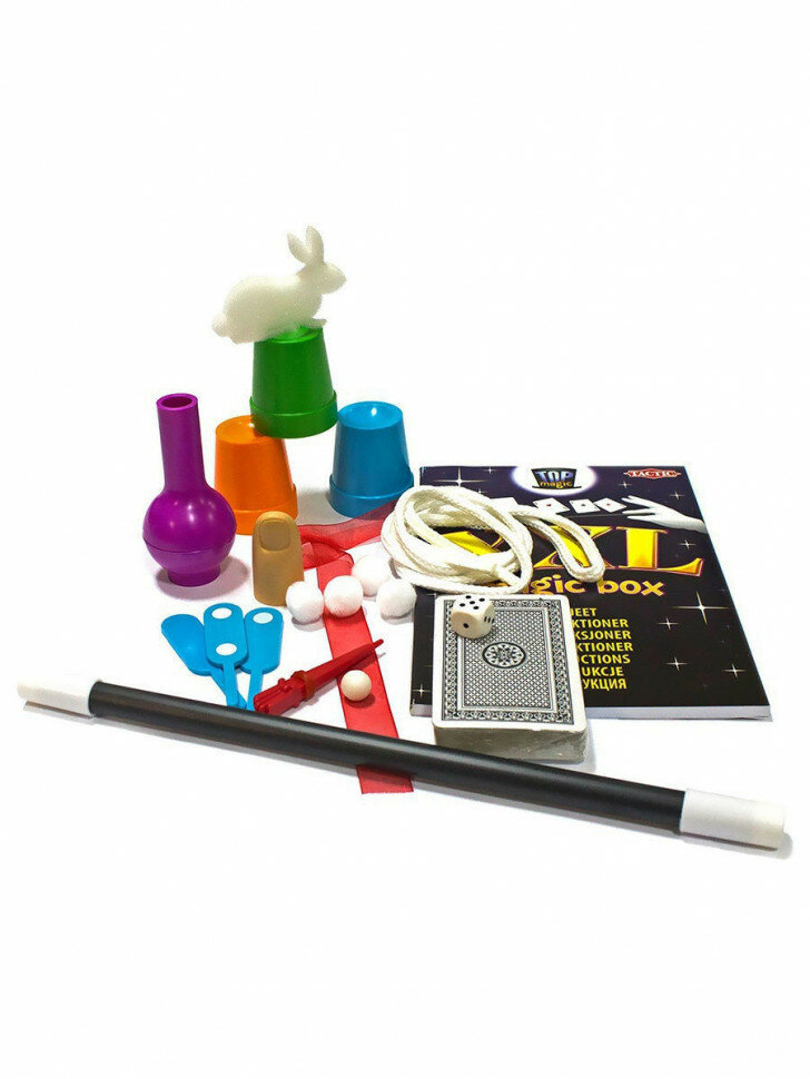 Игровой набор "Фокусы XXL" от торговой марки Tactic. Поможет ребенку почувствовать себя настоящим иллюзионистом! Предметы из набора позволяют выполнить до различных 55 фокусов. В комплекте идет инструкция, с подробными описаниями фокусов, а так же ссылка на сайт проекта, где есть видео-уроки по домашнему волшебству. Все предметы выполнены из качественных материалов, безопасных для здоровья.