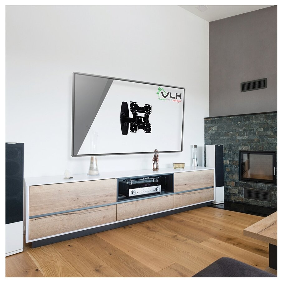 Кронштейн для ТВ VLK подходит для настенной установки телевизоров, поддерживающих стандарт VESA от 100x100 до 200x200. Кронштейн подойдет для эксплуатации совместно с телевизорами, диагональ которых варьируется от 20 до 43 дюймов. Кронштейн имеет конструкцию, которая регулируется в широких пределах: угол поворота достигает 180°, угол наклона вверх – 5°, а угол наклона вниз – 20°. Расстояние от стены может регулироваться в пределах от 80 до 275 мм.