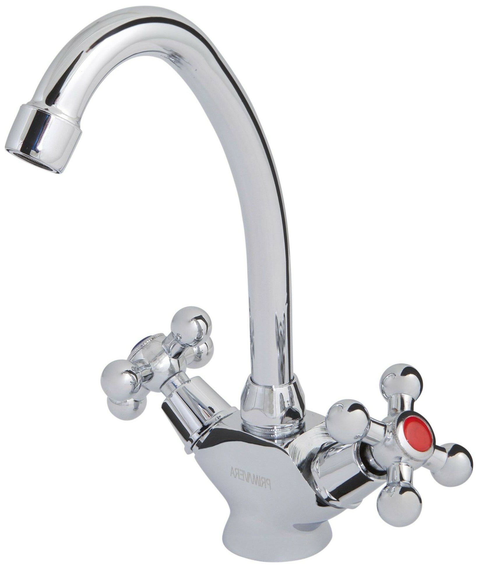 Смеситель для кухни Primavera Asolo PV-014 с двумя вентилями создан для ценителей классики в дизайне. Элегантная модель с высоким поворотным изливом красиво смотрится на мойке.