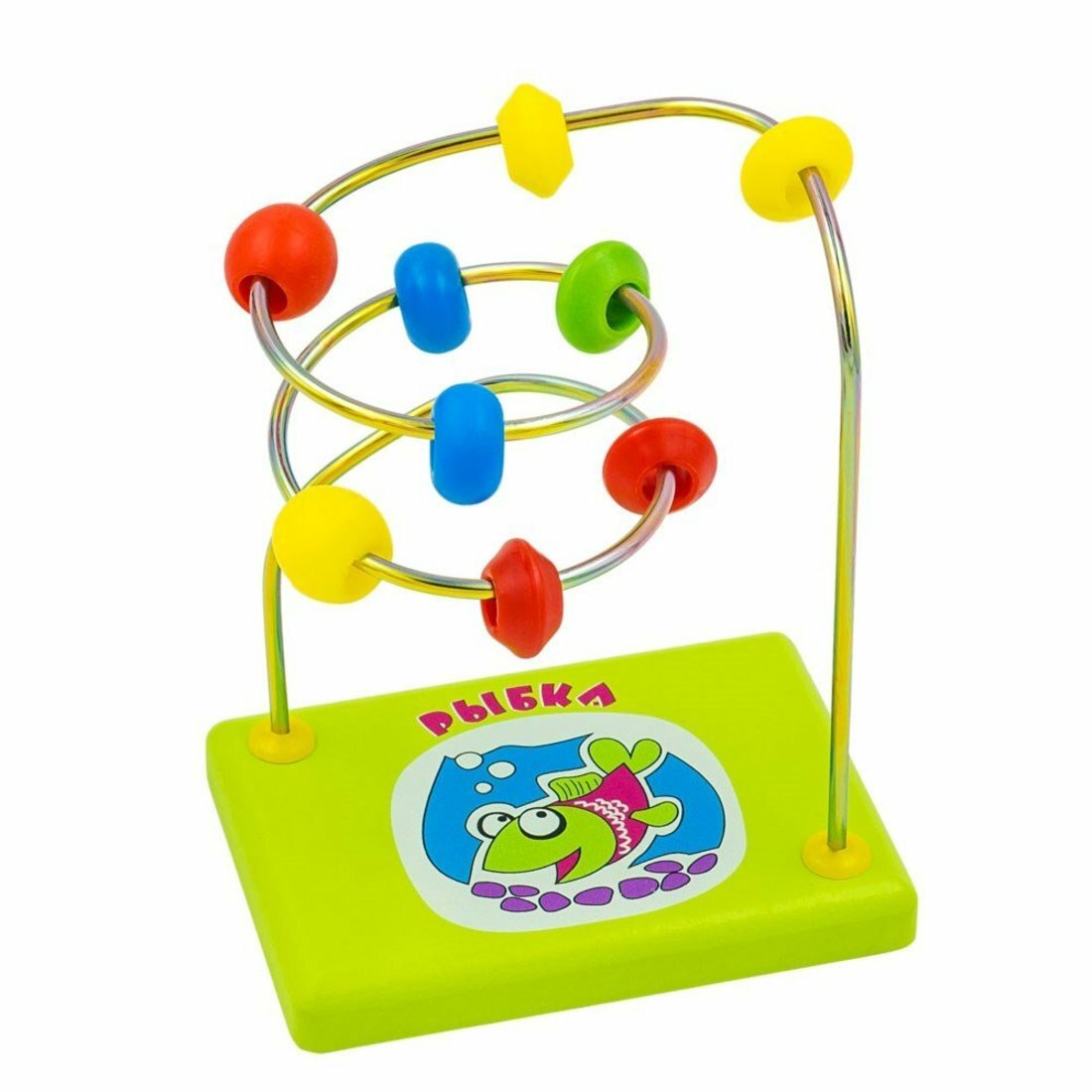 Развивающая игрушка Лабиринт – Рыбка разовьет у ребенка мелкую моторику ручек, пространственное мышление и правильное восприятие предметов. Игрушка выполнена в виде подставки с изображенной на ней симпатичной улыбающейся рыбкой, а на подставке специальная спираль, на которую нанизаны разноцветные бусины. Ребенок заодно выучит разные цвета, пока будет передвигать бусины и оставлять в любом положении, чтобы получилась какая-нибудь красивая композиция.