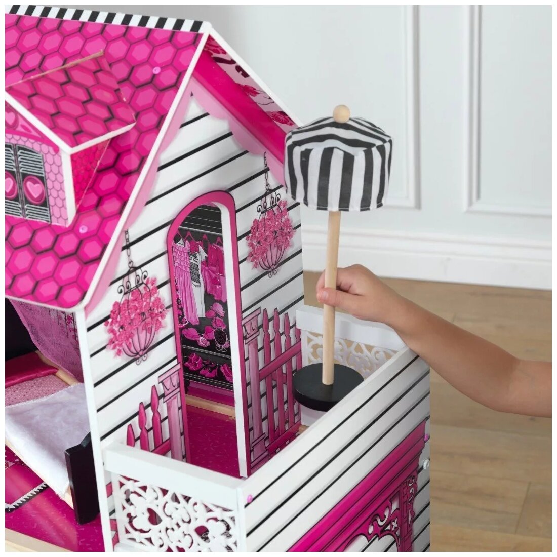 Нестандартно контрастная яркая расцветка кукольного домика Амелия делает его универсальной сюжетной игрушкой как для самых юных модниц, так и для эпатажных и креативных девчонок-подростков