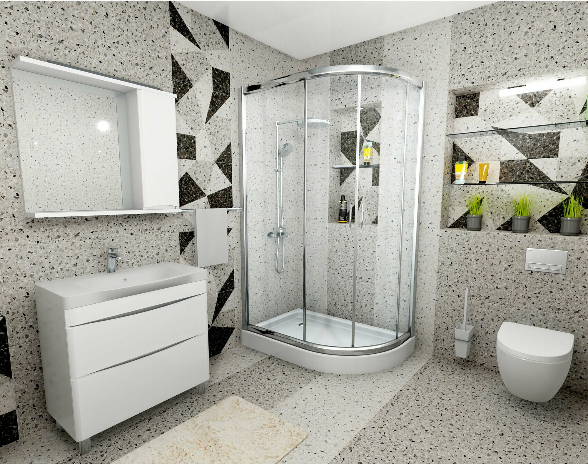 Правильно подобранная мебель - главный критерий успеха при обустройстве ванной. Компактный шкаф с зеркальной панелью не занимает много места, но позволяет держать под рукой все необходимые вещи.