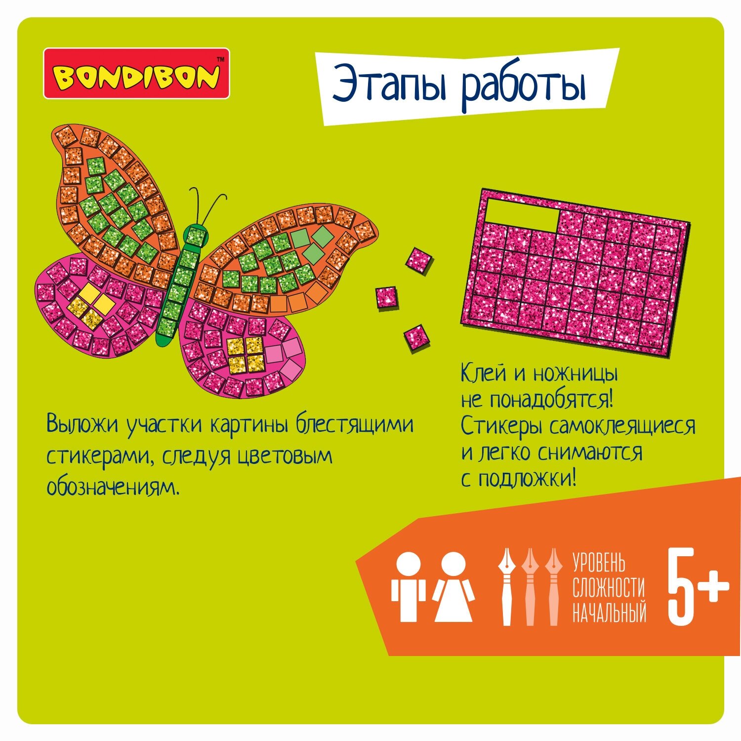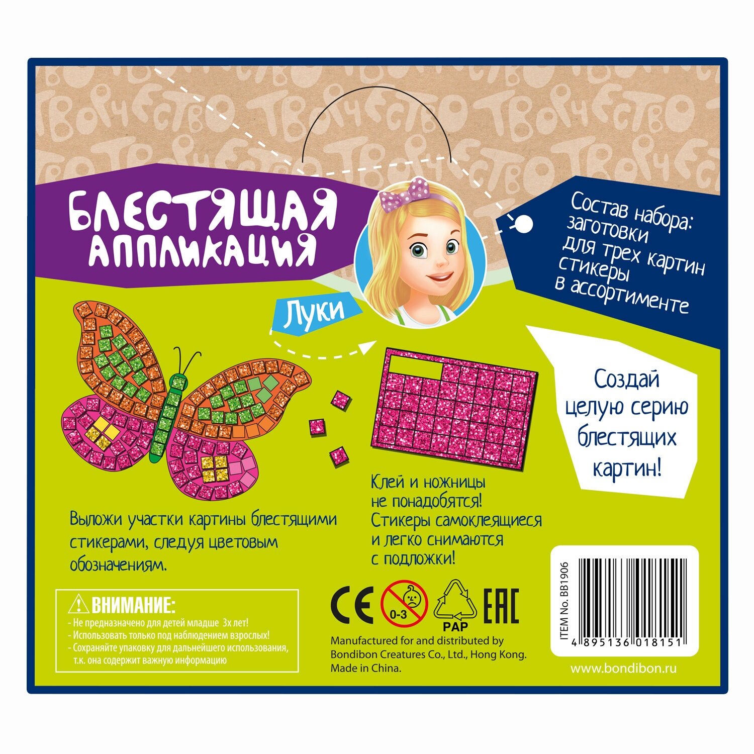 Раскрась картину яркими стикерами с набором для творчества блестящая аппликация: цветочная поляна серии Творчество с Луки от Bondibon. Легко и увлекательно раскрывайте креативный потенциал ребенка!Вам не понадобятся ножницы и клей! Выберите одну из трех картин с цветком, пчелкой или бабочкой. Выложите участки блестками, следуя цветовым обозначениям. Стикеры самоклеящиеся и легко снимаются с основы! Оригинальная красочная поделка готова! Блестящая картина станет отличным дополнением к интерьеру детской комнаты. Аппликацию можно подарить друзьям или отнести на конкурс в детский сад, школу. Набор для хобби от Бондибон надолго увлечет детей и поможет развить интерес к конструированию, рисованию, цветовосприятие, мелкую моторику, усидчивость, фантазию и художественный вкус.В набор входят: 3 заготовки для картин, стикеры. Возраст 5+Соберите коллекцию наборов для рукоделия серии Творчество с Луки и Буки!