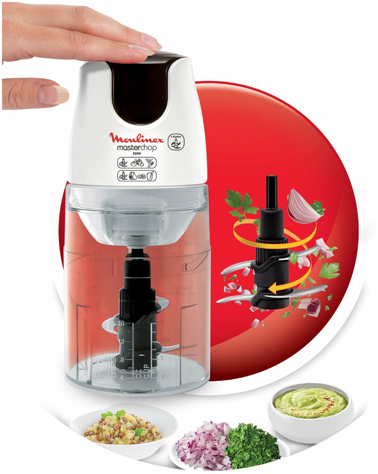 Измельчитель Masterchop оснащен 4-мя ножами для получения наилучших результатов. Ножи "3 в 1" от Masterchop идеально подходят не только для измельчения лука, чеснока и трав, но и для приготовления майонеза.