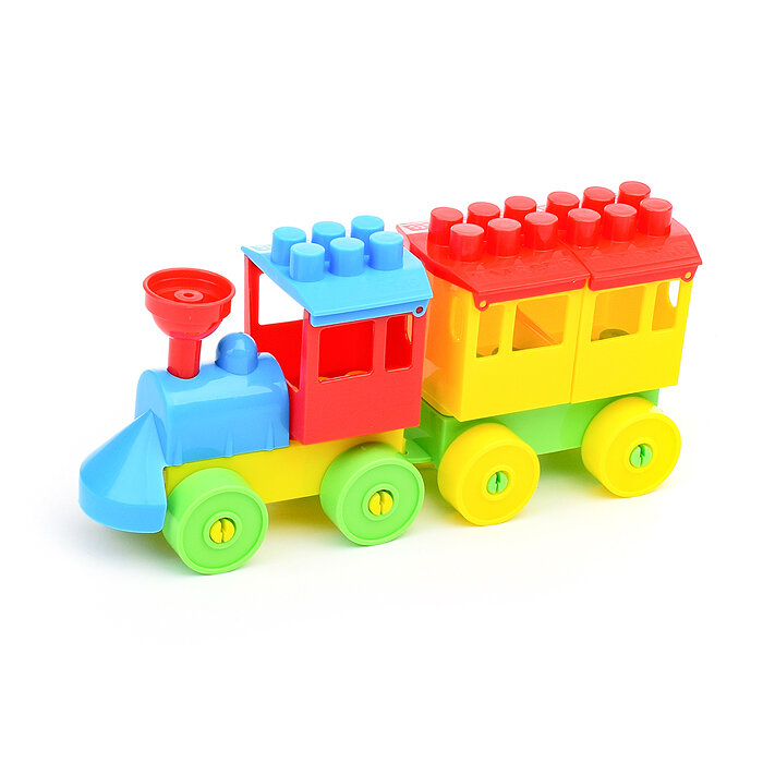 Конструктор Полесье создан специально для самых маленьких водителей. Паровозик сцеплен с тремя вагончиками. Яркий паровозик состоит из нескольких крупных деталей, которые малышу будет удобно держать в ручках. Паровозик можно полностью разобрать и собрать заново. Конструктор изготовлен из высококачественного материала, абсолютно безопасного для детей. Красочный паровоз станет любимой игрушкой вашего малыша! Развитие навыков. Игра с конструктором развивает цветовое восприятие, мелкую моторику, воображение, пространственное мышление.