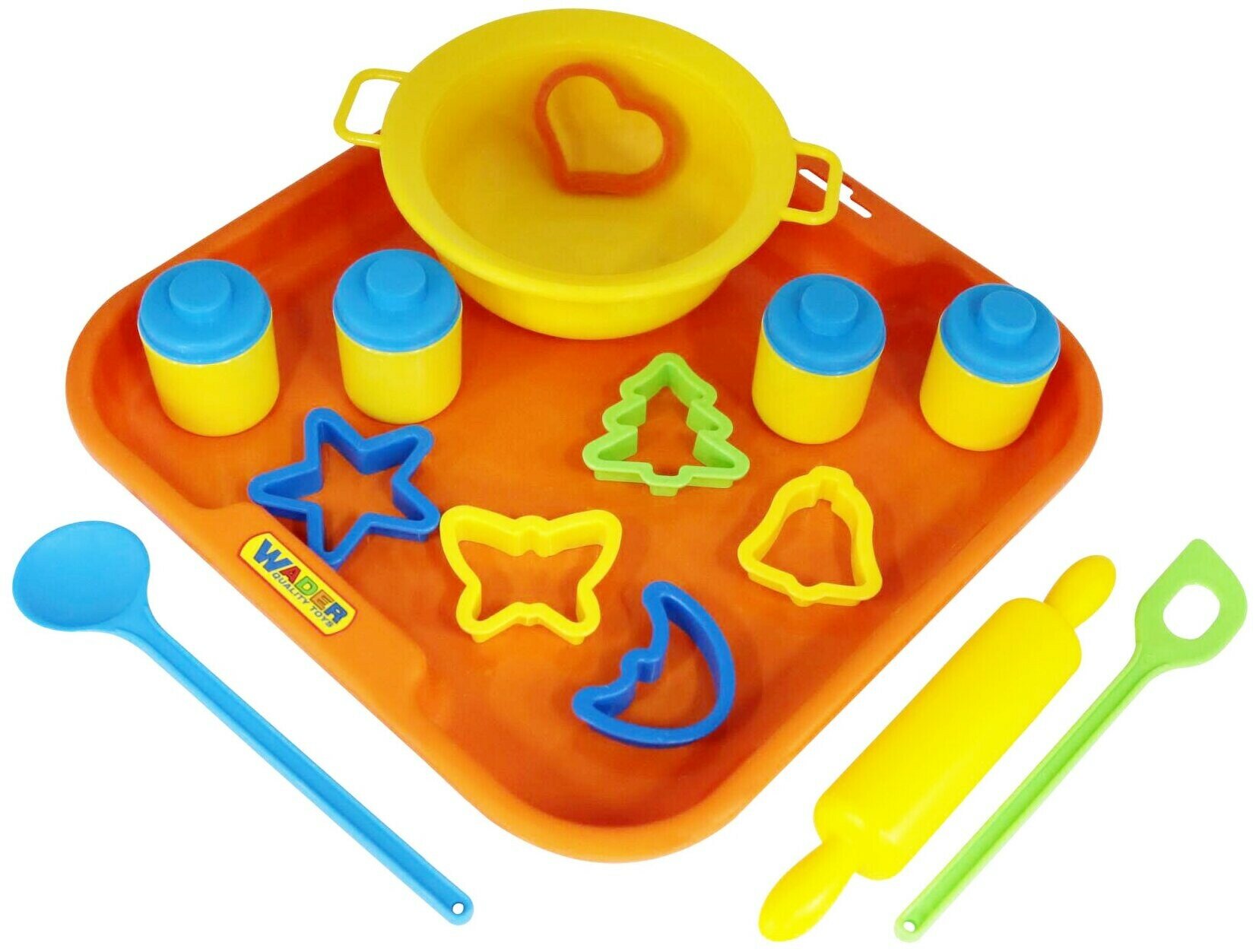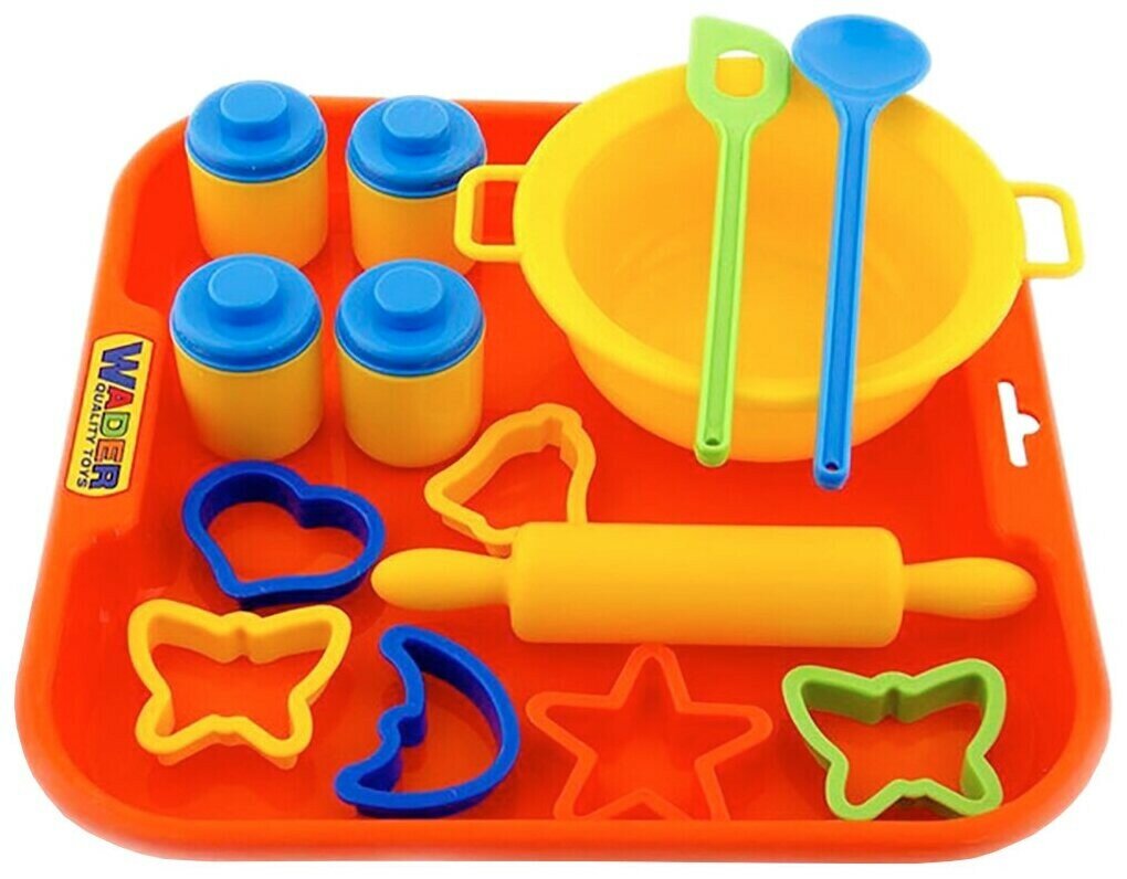 Набор детской посуды для выпечки № 1 с подносом Wader - Набор детской посуды для выпечки № 1 с подносом Wader подойдет маленьким и большим кулинарам. Детям от трех лет. В набор вошли емкости для приправ и разных добавок с плотными крышками (4 шт.). Чтобы замесить пышное тесто в комплекте есть глубокий тазик и специальная мешалка. А длинная лопатка — ложка нужна чтобы снимать «горячее» печенье с противня.