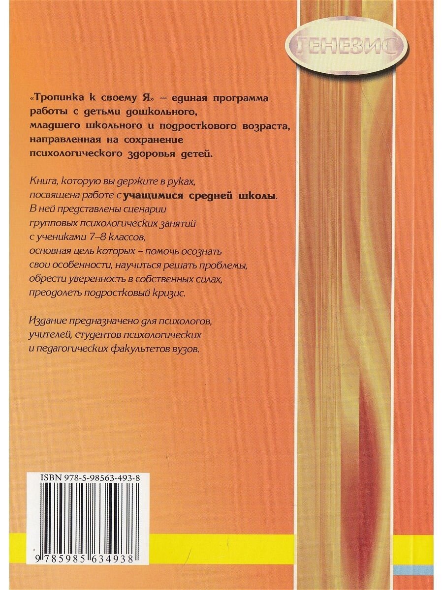 "Тропинка к своему Я. Средняя школа (7-8 классы). ФГОС"Данное издание выходит в рамках авторской серии "Тропинка к своему Я". Книга, которую вы держите в руках, посвящена работе с учащимися средней школы. В ней представлены сценарии групповых психологических занятий с учениками 7-8 классов, основная цель которых - помочь осознать свои особенности, научиться решать проблемы, обрести уверенность в собственных силах, преодолеть подростковый кризис. Издание переработано в соответствии с особенностями современных подростков и требованиями ФГОС.Книга будет интересна психологам, классным руководителям, учителям, а также студентам психологических и педагогических факультетов вузов.4-е издание, переработанное.