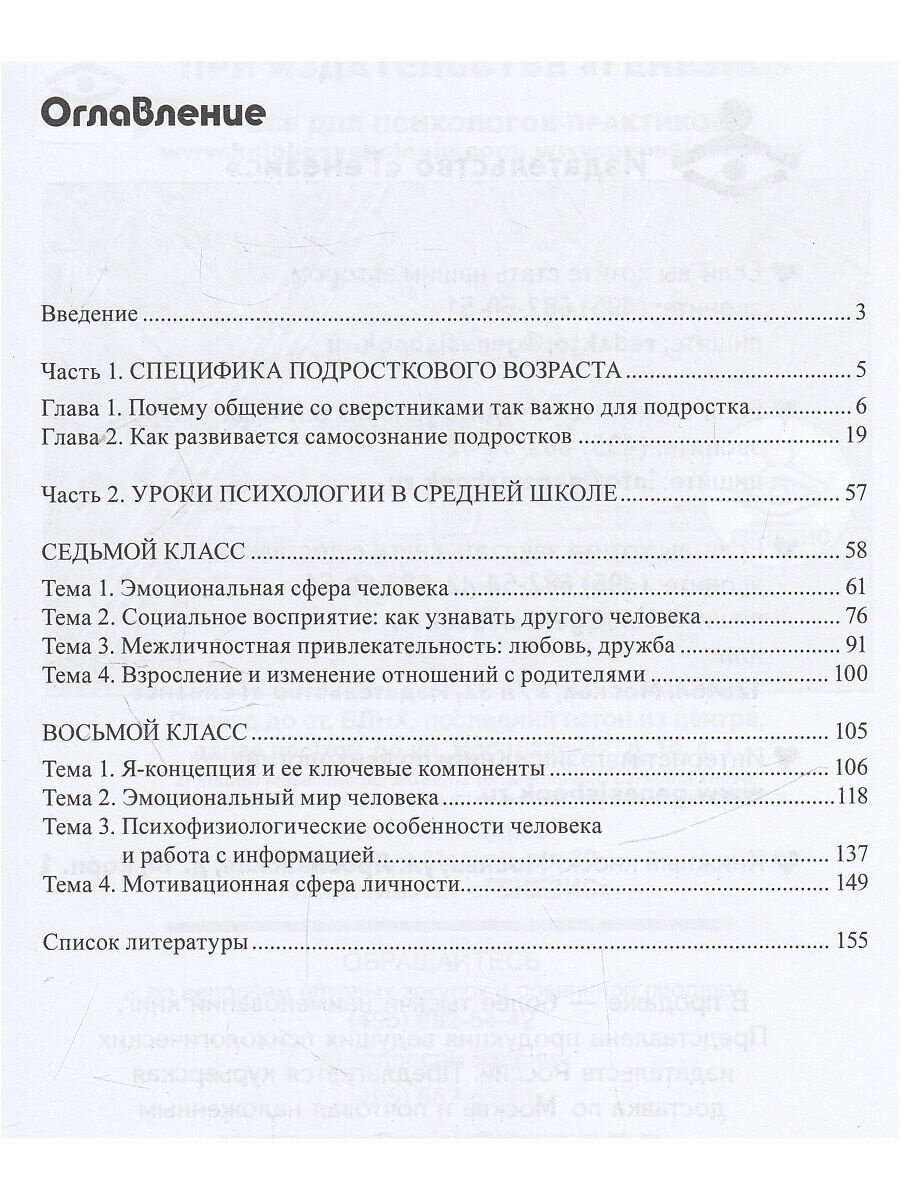 Купила книгу для написания внеурочной деятельности по курсу психологии для учащихся 7-8 классов. Написано все доступным языком, занятия расписаны хорошо, подробно. Занимались по ней с детьми в прошлом учебном году. Дети остались довольны - а это главное. Книгой довольна. Рекомендую к использованию всем педагогам-психологам, работающим с детьми