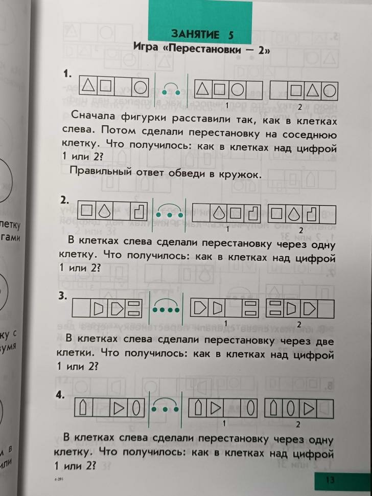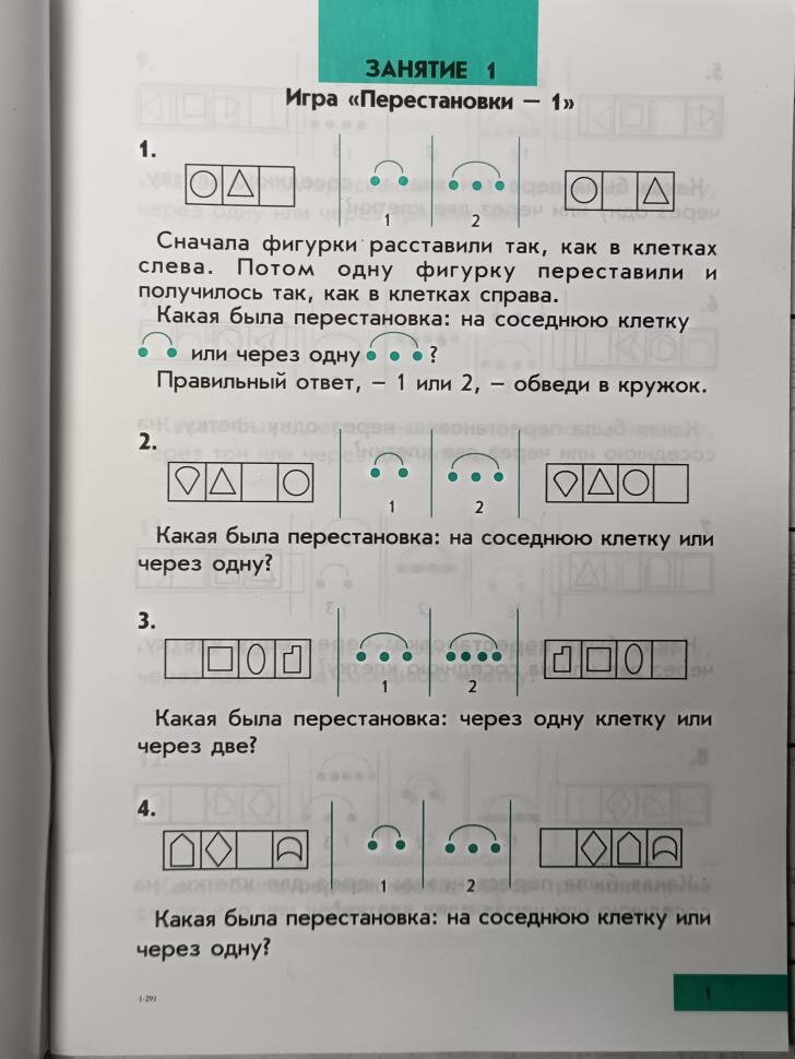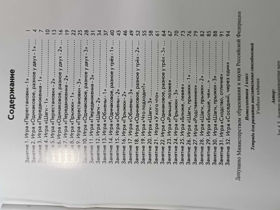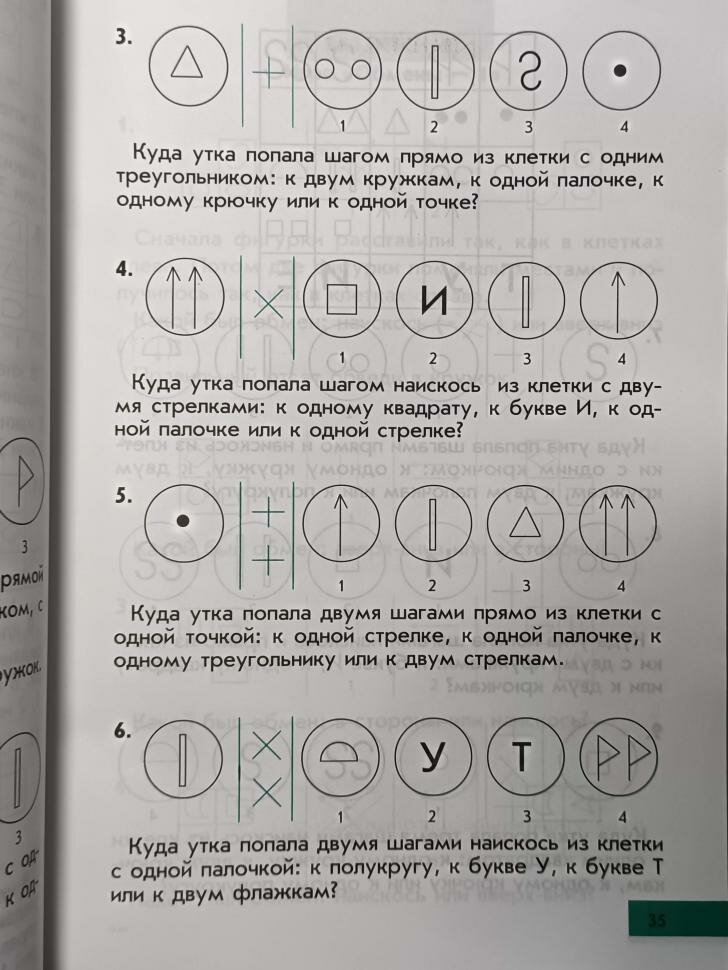 Эта книга является продолжением "интеллектики для дошкольников", но заниматься можно начать и прямо с этой книги. Задания более четкие и формализованные, чем для дошкольников, уже напоминают алгоритмы. Книга насыщена разнообразными заданиями с рисунками-схемами. Есть текстовые задачи (вообще без рисунков, как в учебнике). И конечно опять встречаются опечатки... На третьей прилагаемой иллюстрации в задании 9 текст схеме вообще не соответствует, и в любом случае (по схеме или по тексту задания) получится 3 подходящих ответа (в задании подразумевается что один).