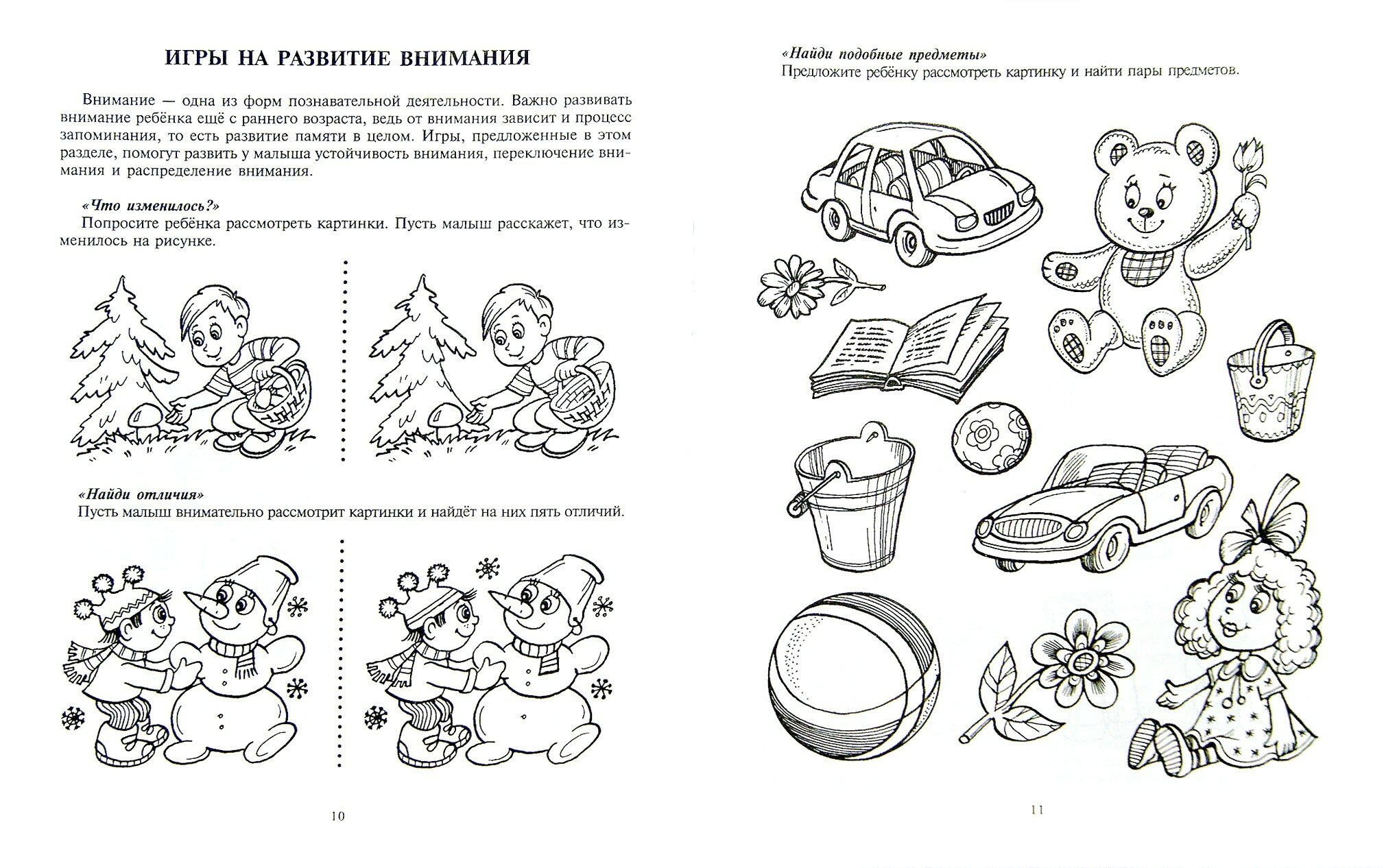 Не смотря на то, что некоторые задания предполагают просмотр этой книжки ребенком, например игра "какой предмет лишний?", издание больше подходит для взрослых как педагогическое пособие. Тонкая просвечивающаяся бумага и черно-белые рисунки не способствуют развитию интереса у ребенка, но ведь их можно раскрасить цветным карандашом или же использовать какие то аналогичные предметы. Лично мне книжка понравилась разнообразием предложенных игр под любое настроение ребенка. Бывает так устаешь, что выдумывать что-то новое уже нет сил, а ребенок требует. Вот тут-то и приходят на помощь такие книжки.