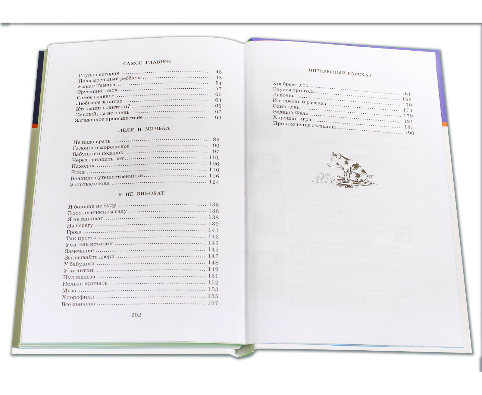 Сборник большой. Рассказов много - они разноплановые. Что-то пригодно и для совсем маленьких (слушателей даже, а не читателей). Но к некоторым рассказам вернутся и старшие школьники и даже взрослые. В своих даже и детских рассказах Зощенко - остается взрослым писателем (мое мнение). Сквозит взрослый автор во всем...чаще всего явно в некотором "резюме" расскапза в последних строках. Вероятно правильнее будет просто читать сборник в разнобой. И, учитывая, что дети растут быстро - объяснять рбенку, что Зощенко взрослый сатирический писатель (хотя и филосов в некоторых поздних книгах). Книга как все книги серии. Бумага хорошая, белая.