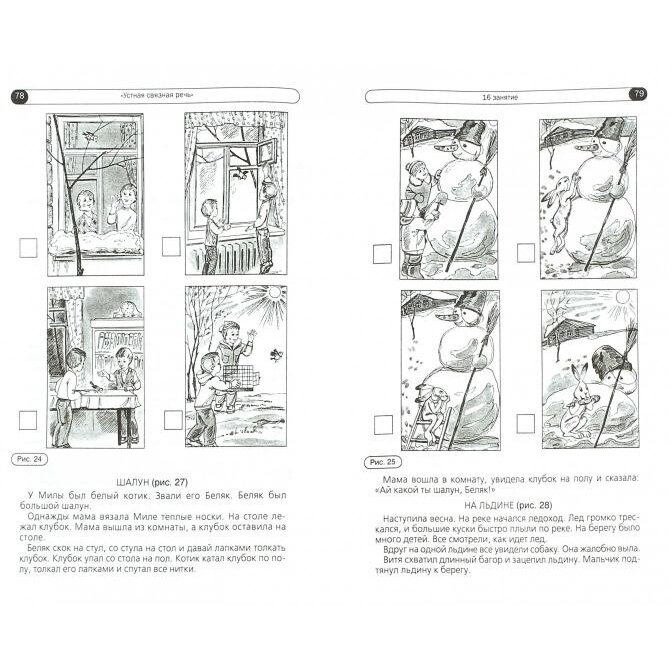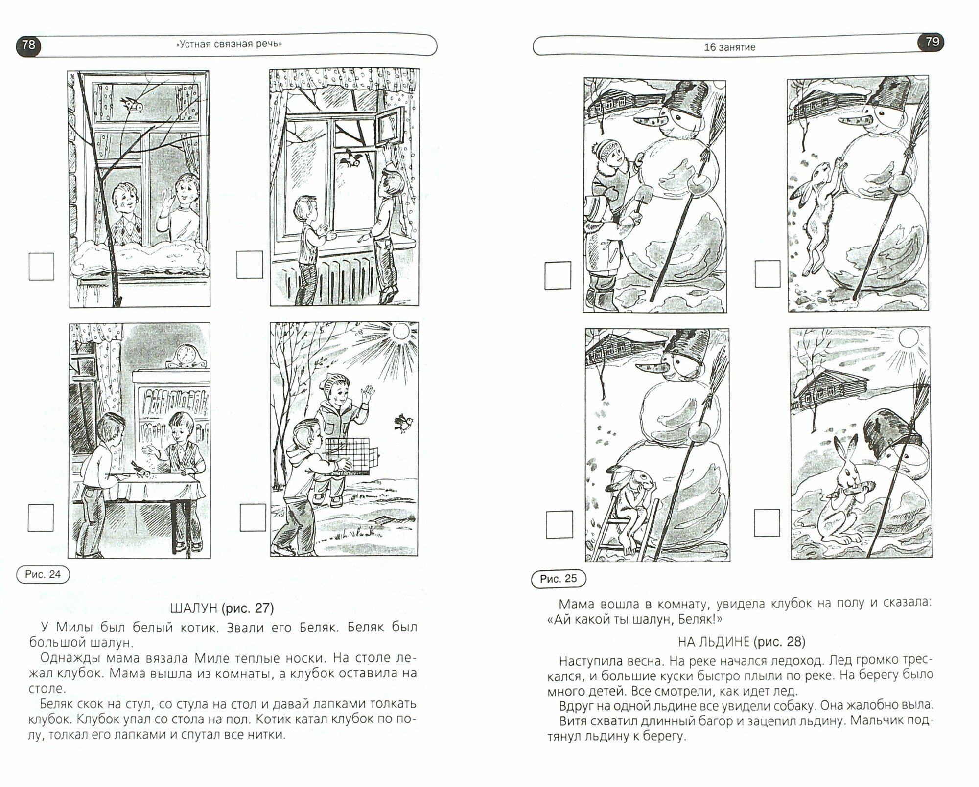 Конкретно эта книга содержит разделы: "Устная связная речь"(20 занятий, от составления пересказа с опорой на вопросы к составлению рассказа по материалам текущих наблюдений) и "Лексика" (15), темы занятий на сканах.