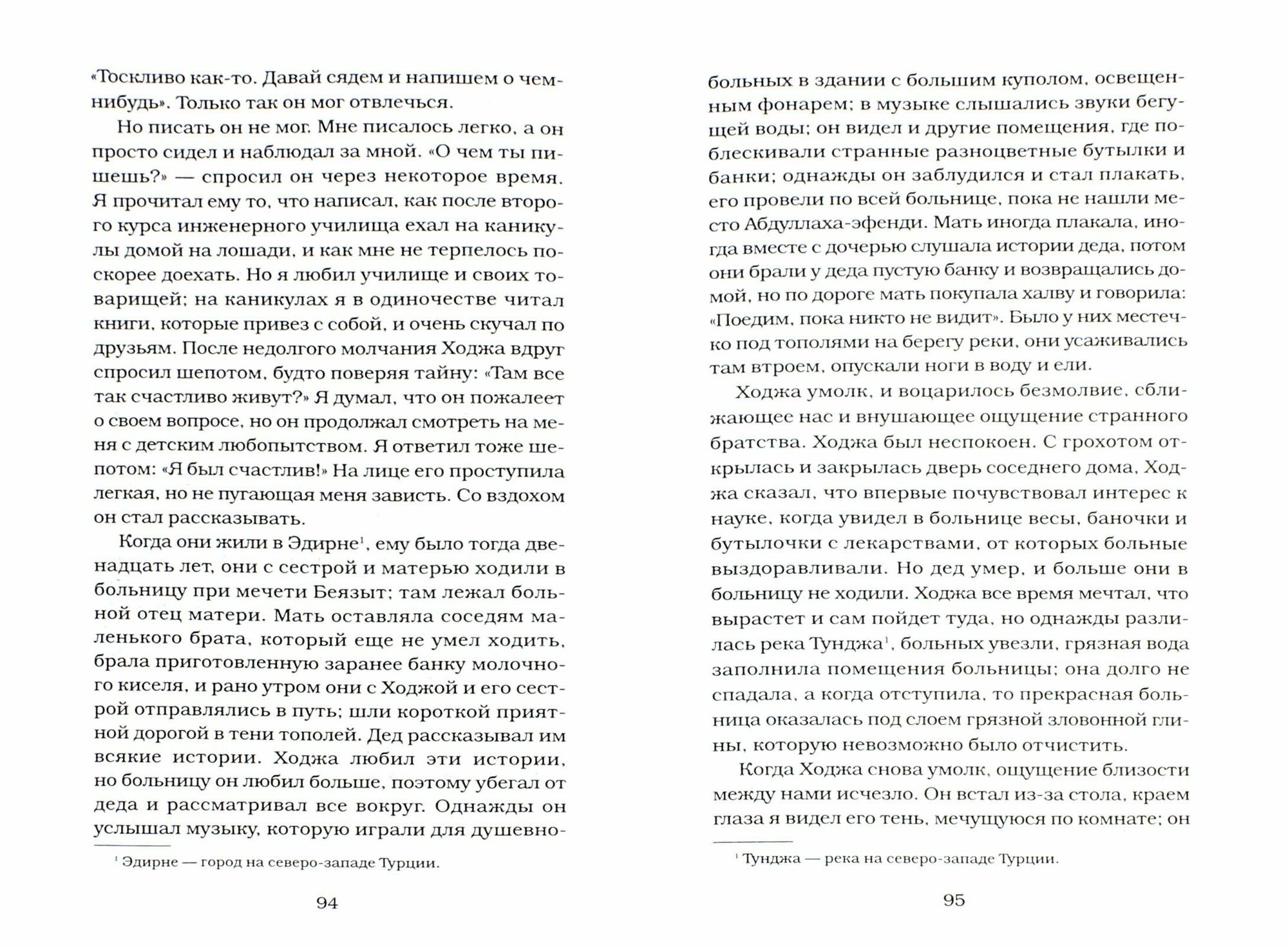 Давно хотела прочитать что-нибудь Орхана Памука, выбрала эту книгу и видимо ошиблась. Мне не понравился ни сюжет, ни как написано. Например, описывается сцена, где итальянца-раба заставляют принять мусульманство под страхом смерти (голову хотят отрубить) - ну нисколько не задевает, читаешь просто потому что надо дочитать. Не получается сопереживать героям - все как-то очень сухо. Никаких нюансов турецкого быта того времени я не узнала совершенно (хотя хотелось - для этого и покупалась книга), кроме нескольких интересных старых названий местности. А банальность сюжета - итальянец попал в плен, стал рабом турка очень похожего на него, и через много лет турок уехал жить в Италию, а итальянец стал турком, женился, завел детей и жил долго и счастливо, но иногда вспоминал бывшего хозяина. Получились - скучные люди, скучные разговоры, скучный конец! Мне не понравилось! но я попробую еще что-нибудь прочитать этого автора.