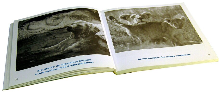 Очень милые фотографии, часто с удачными подписями-комментариями к ним, но не более. К тому же около половины снимков не имеют никакого отношения к теме материнства или детства. Возможно, фотографии смотрелись бы лучше, будь у книги другой формат. Но этот крохотный квадратик... В нем и горизонтальные и вертикальные снимки выглядят очень мелкими и не передают всей их красоты. Радует только то, что часть средств от продажи этой книги будет передана Московскому зоопарку