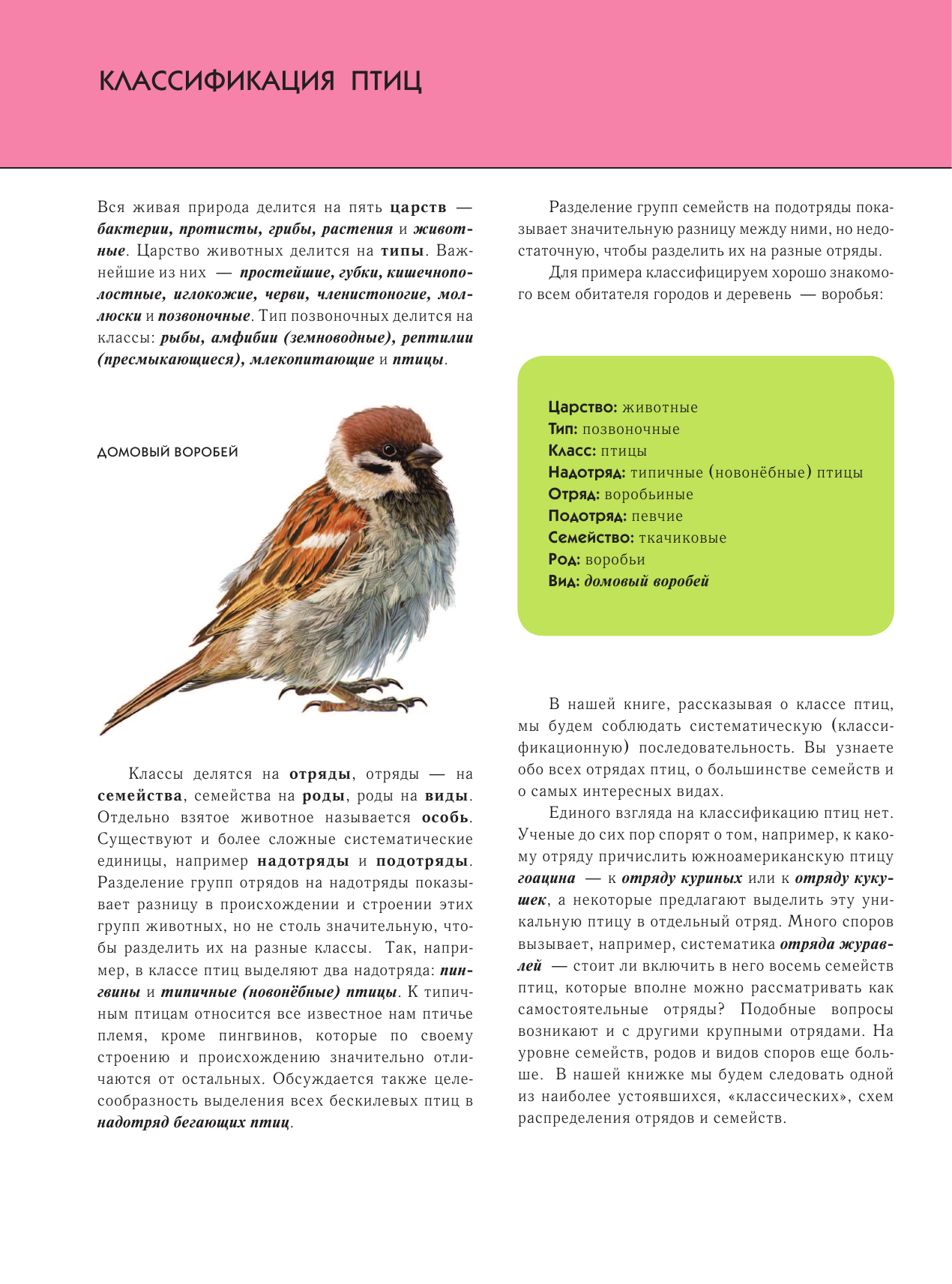 Книга больше рассчитана на школьников, чем на дошколят. Содержит различные подробные факты, которые подойдут для доклада в школе. Шрифт мелкий. Картинки есть на каждой странице. Вся книга делится на отряды и семейства птиц. Со своей дошкольницей читаю текст выборочно, выбирая самое основное. Самостоятельно она любит читать названия и рассматривать картинки. Около птиц стоят номерки и по номерку можно вычислить в тексте название (жирный шрифт + номер).