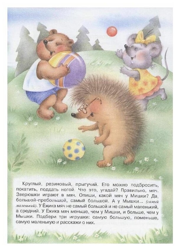 Рекомендую всем родителям, кто занимается развитием своих детей, а также воспитателям. Ниже уже дан подробный комментарий. Добавлю, что каждое занятие начинается с прочтения истории про зверят и рассматривания соответствующей картинки, затем идет обсуждение с ребенком этой истории, а затем и само занятие. К каждому занятию родителям нужно сначала подготовить соответствующий материал. Мы занимаемся по этой книжке с 2,5 лет. Ребенку очень нравится, поэтому все занятия проводим по несколько раз.