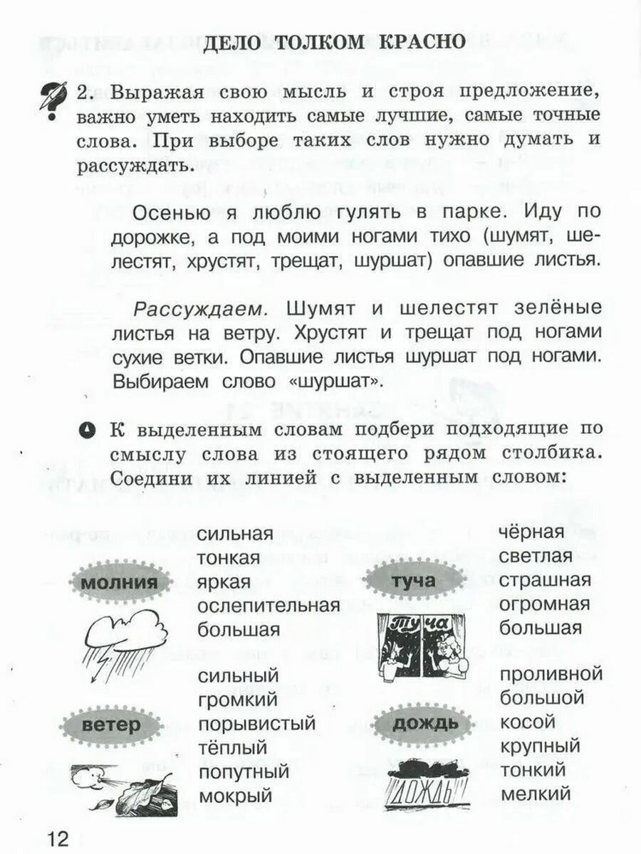 Много интересных, разнообразных заданий. Рассматриваются самые разные темы: синонимы, антонимы, сравнения, работа с текстом, и всё это в игровой форме и на доступном уровне. Замечательные стихи, пословицы, загадки. Книжка интересна не только для первоклассников, но и для ребят постарше, а также для их родителей.