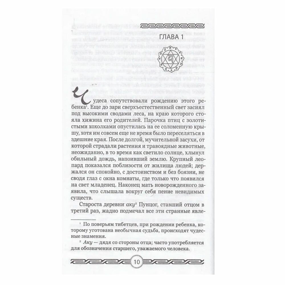 Автор этого романа о Тибете, Александра Давид-Неэль (1868-1969) - замечательная фигура в истории мирового и европейского мистицизма. Проведя в Тибете долгие годы, она изучила язык, обычаи и духовную культуру этого региона и стала первой западной женщиной за всю историю человечества, которой разрешили прикоснуться к сокровенным тайнам Лхасы. Роман рассказывает о великом в понимании каждого тибетца призвании стать перерождением святого монаха, о полном неожиданных поворотов судьбы и событий пути главного героя к этой заветной цели. Книга полна интересных, подлинных сведений об обычаях и нравах жителей Страны снегов.