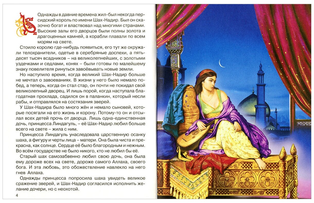 Дочка была в восторге (ей 4 года). Иллюстрации яркие, насыщенные. Но на мой вкус слишком насыщенные, выполненные методом "рекле" (режем-клеем). Что я имею ввиду? Передрали репродукции картин, и вставили их не соображая, что на одной и той же картинке герои одеты в одежды разных эпох, разных стран, а ерунда ребенок мол не поймет... Ребенок может и не поймет, ярко и ладно... Но все же... Например, по тексту у Золушки крошечная ножка, но на картинке пышущая здоровьем итальянская крестьяка с "крестьянской" же лапкой. Где логика? Фея, в одежде опять же итальянской крестьянки, подняла руки вверх, ну явно в оригинале виноград или фрукты собирает, а ей в руки в этот момент волшебную палочку всунули. Или в сказке "Свинопас" по тексту: король одел свои стоптанные туфли, а на картинке великолепный вельможа с порадного портрета и т.д. Вообщем впечатление двойственное: с одной стороны все ярко, бумага качественная, шрифт четкий,цена приемлемая, но те "но" о которых я писала выше оставили неприятный осадок от знакомства с этой книгой.