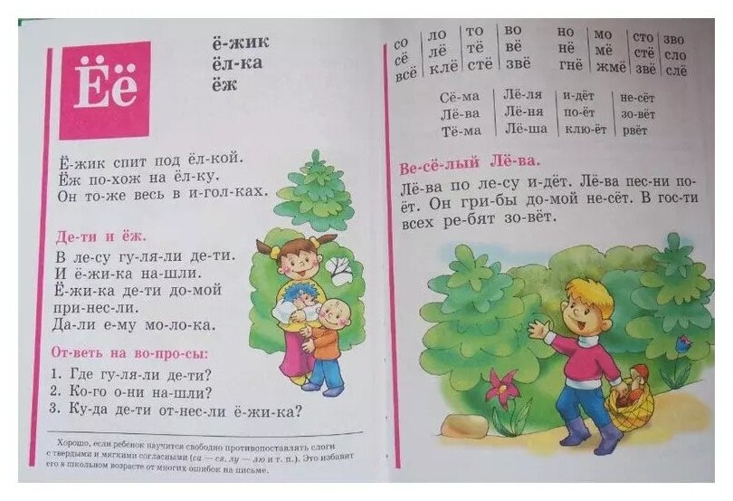 Довольно удачная книга. Хорошие картинки, крупные буквы, советы и рекомендации для родителей на каждой странице. Конечно же без основы основ - советского Букваря, здесь не обошлось, да и как иначе! Удачное сплетение классики преподавания с ненавязчивой оригинальной логопедической методикой. В магазине стояло 3 варианта этой книги, взяла самое крупное издание, так как для детей лучше, когда буквы крупнее - меньше нагрузка на глаза.