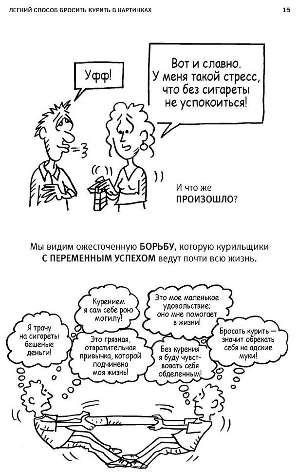 Прочитав эту книгу, я поняла, как это работает, на что автор делает упор, и почему на людей влияет этот способ, и они бросают курить: меняется отношение к курению и к бросанию курения.
