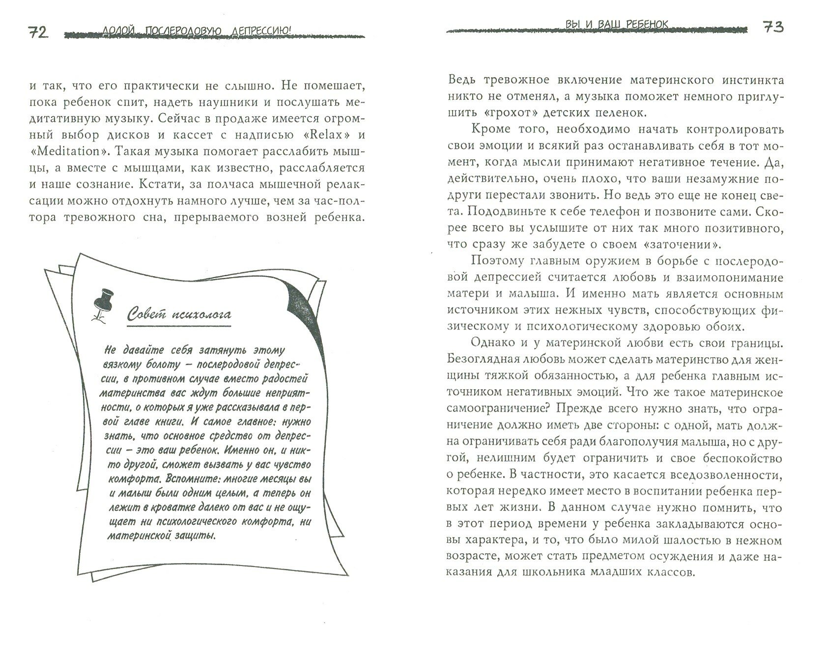 Не очень полезная книжка. Складывается впечатление, что основной причиной послеродовой депрессии является внешний вид молодой мамы. Даются некоторые не особо дельные советы по приведению себя в порядок - на уровне женских журналов. Проскальзывает идея, что у мамы двоих детей депрессии уже, конечно, не может быть. Сомнительная мысль.