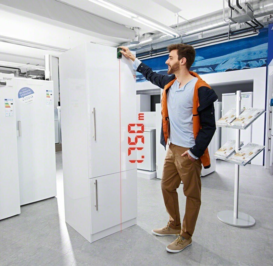 Лазерный дальномер Bosch — удобный и компактный прибор, идеальный для домашнего использования. Вместе с тем, этот прибор гораздо большее, нежели просто лазерная линейка. Помимо высокоточного измерения длины, лазерный дальномер Bosch позволяет определить высоту конкретного сегмента помещения, а также вычислить его объем. При этом лазерный дальномер Bosch обладает высокой точностью — ±2 мм. Дальность прицела прибора составляет 25 метров, чего более чем достаточно в бытовых условиях.