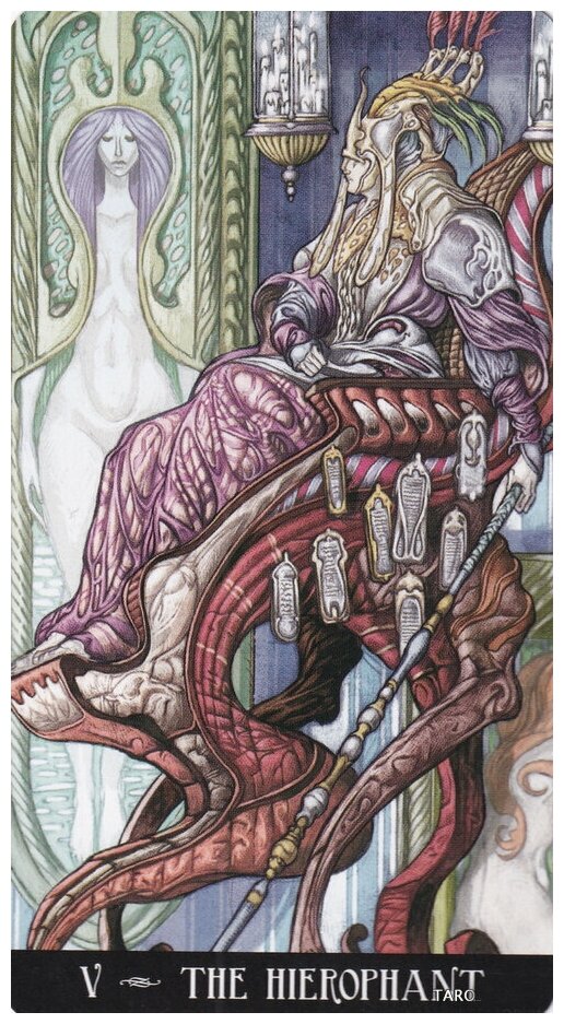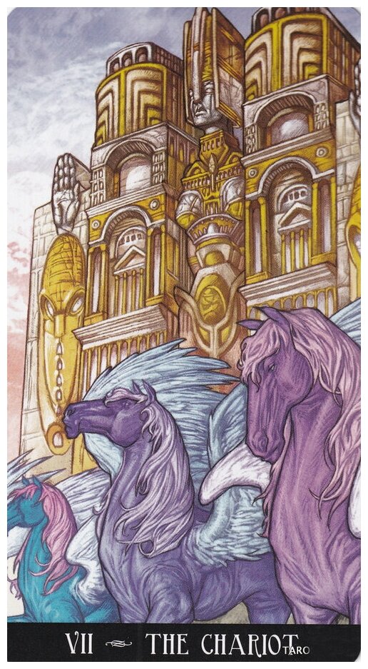 Думаю, многие примерно представляют себе, как выглядят среднестатистические обложки фэнтези-романов: много обнаженной накачанной плоти в редких доспехах в стиле Бориса Валеджо. Я полагала, что найду в этой колоде нечто подобное, но я ошиблась! И очень рада, потому что иллюстрации этого таро - это нечто! Это специально придуманный и отдельно существующий фэнтези-мир, очень необычный и совсем непохожий на фэнтези-попсу. -