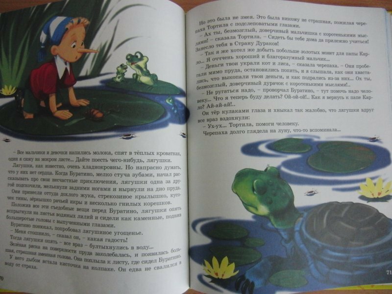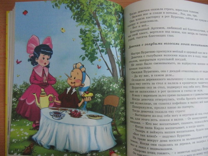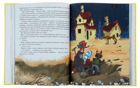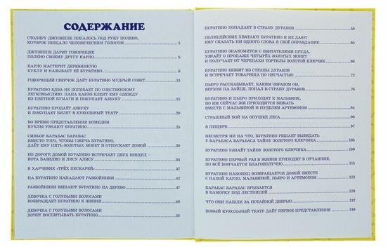 Книга в общем и целом понравилась всем членам семьи, за исключением малыша. Посмотрел и больше не просит ее. Не понравилось, что уж чересчур жутко нарисованы Лиса Алиса, Кот Базилио и Карабас Барабас. Понятное дело, что они - отрицательные герои, но можно было бы и немного сгладить их черты.