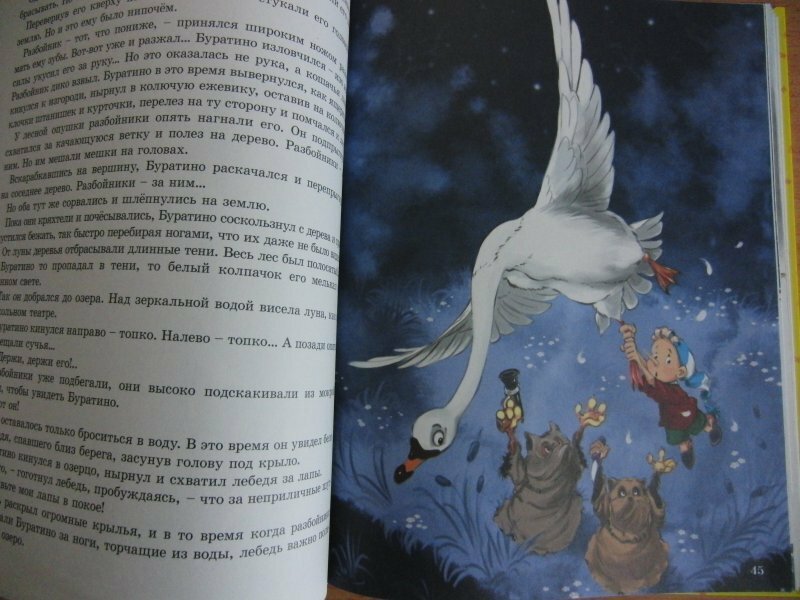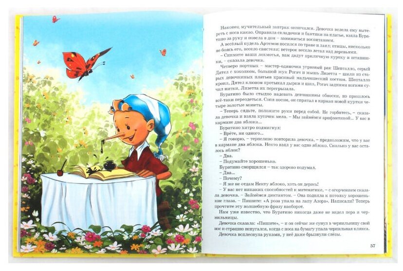 Эта книга у нас тоже есть. Читаем. Не знаю, насколько оригинален текст, но опечатки по тексту и довольно грубые есть! Это огорчает и портит впечатление, конечно. Приходится попутно исправлять от себя текст, чтобы не читать неверные обороты ребенку. Картинки не высокохудожественные, но нормальные. У нас есть книги этого издательства. Да, они недорогие, но иллюстрации многие одинаковы в книгах, они просто копируются. Ребенок даже узнает: "Мам, а в той книжке такая же машинка!" И она действительно такая же! Точно! И Карабаса-Барабаса тоже узнал сын в другой книге. Сказал: "В Золотом ключике у Карабаса такое же лицо!" (один в один скопировано в др. книгу со стихами для детей!!!)