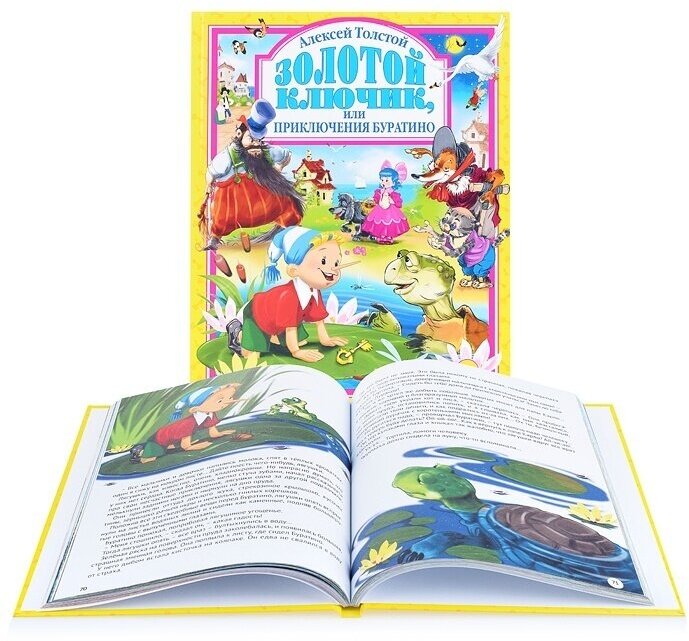 Когда я был маленький - очень, очень давно, - я читал одну книжку: она называлась Пиноккио, или Похождения деревянной куклы" (деревянная кукла по-итальянски - буратино). Я часто рассказывал моим товарищам, девочкам и мальчикам, занимательные приключения Буратино. Но так как книжка потерялась, то я рассказывал каждый раз по-разному, выдумывал такие похождения, каких в книге совсем и не было. Теперь, через много-много лет, я припомнил моего старого друга Буратино и надумал рассказать вам, девочки и мальчики, необычайную историю про этого деревянного человечка". Алексей Толстой.