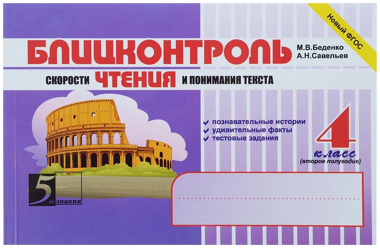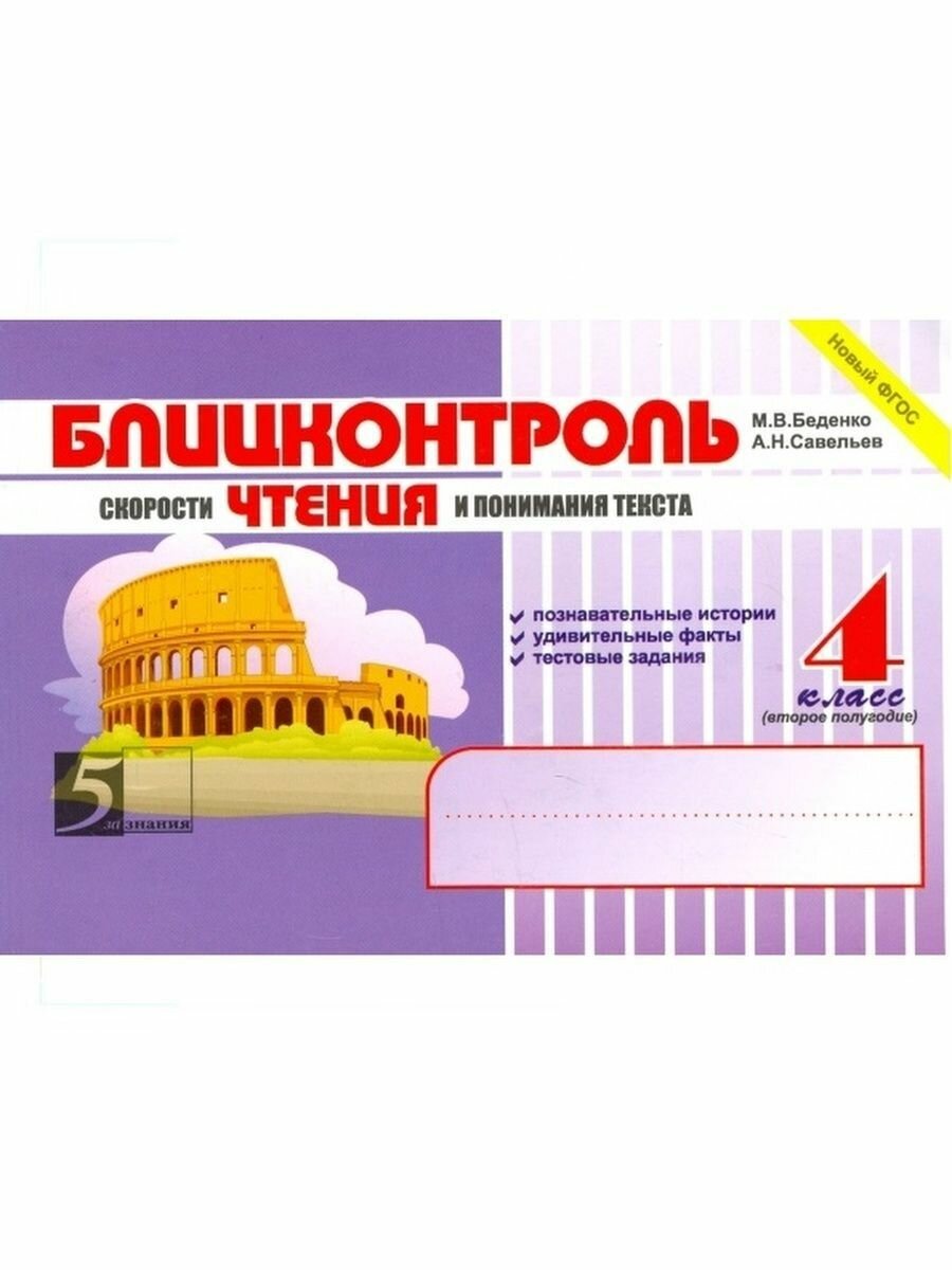 Блицконтроль скорости чтения и понимания текста. 4 класс. 2 полугодие. (Беденко Марк Васильевич, Савельев Александр Николаевич); 5 за знания, 2021