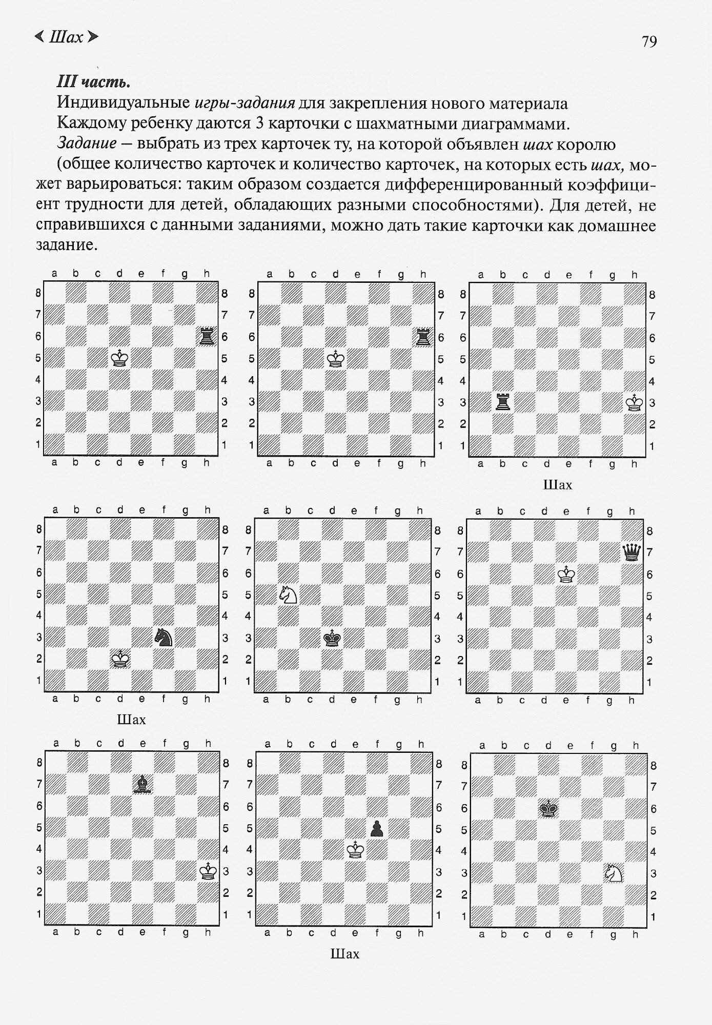 Книга для занятий с ребенком 5 лет, подходит хорошо. Занимаюсь с сыном сама дома. Сама в шахматы играла ~100 лет назад, так что учусь вместе с ним. Книга структурирована по урокам. Есть вводная часть, занятие, задание на проверку. рекомендации родителям. Проходим паралельно с книгой И.Сухина Шахматы для малышей. На мной взгляд неплохое дополнение- там много игровых моментов: лабирины, головоломки...кстати книгу Сухина можно скачать, в отличии от этой книги.