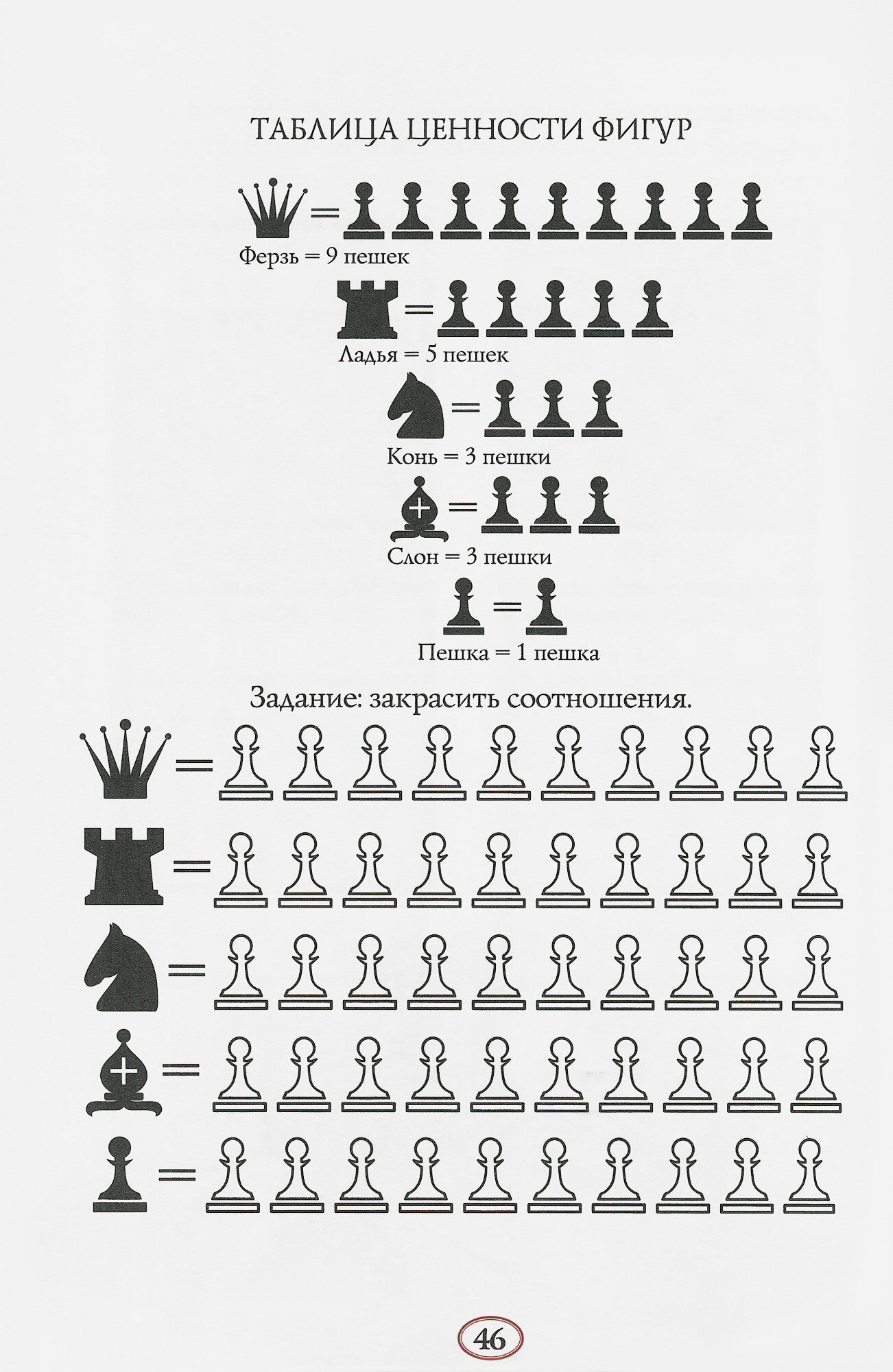 Полноценная рабочая тетрадь для ребенка от 4 до 8 лет! Мы не занимаемся шахматами в кружке, но ребенок любит просто играть. Так вот эта тетрадь поможет родителям в закреплении у ребенка некоторых знаний, которые невозможно получить просто играя! Названия полей, проработка "удобности" каждого поля на доске, вплоть до небольших шахматных схем в конце тетради. Все с использованием цветных карандашей, разнообразных заданий, начиная от простых - к сложным. Ребенок научится "читать" шахматные рисунки и т.п. В общем, мне (не знакомой с терминалогией шахмат), очень помогла эта тетрадка. Выполнена она в приятном и удобном оформлении - бумага плотная белая, рисунки цветные и не очень бросающиеся в глаза (не отвлекают), печать четкая и крупная. В прямам смысле - тетрадь-помошник. Можно использовать тетрадь для самостоятельных занятий дома, без дополнительных пособий.