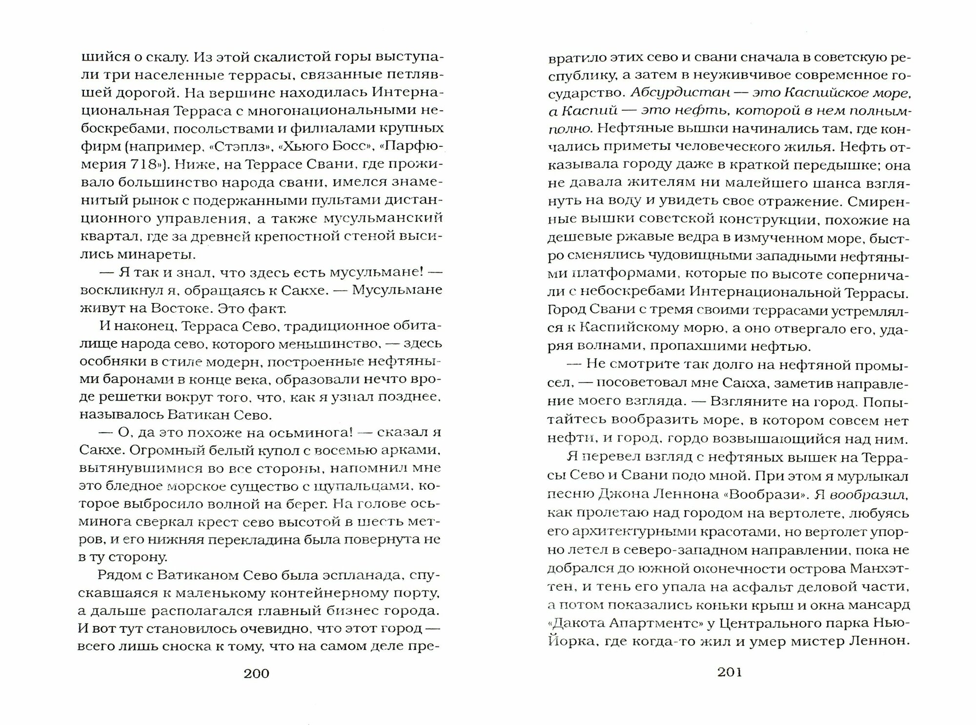 "Абсурдистан" - роман-сатира об иммигрантах и постсоветских реалиях. У его главного героя, преуспевающего во всех смыслах гражданина Америки Миши Вайнберга, есть великая, поистине американская мечта - мультикультурализм. Так он понимает идеал человеческого общежития, свободный от издержек капиталистической системы, религиозного фанатизма и шовинизма. Свои лучшие восемь из тридцати лет Миша провел в Нью-Йорке, став настоящим американцем, которому, однако, очень мешает жить его российское прошлое. Однажды он приезжает к отцу-олигарху в Санкт-Петербург, но из-за убийства, совершенного его родителем, США отказывают ему в обратной визе. В результате, заточенный в пределах своей прежней родины, Миша оказывается в одной из бывших советских республик - Абсудистане - в надежде получить там бельгийский паспорт…