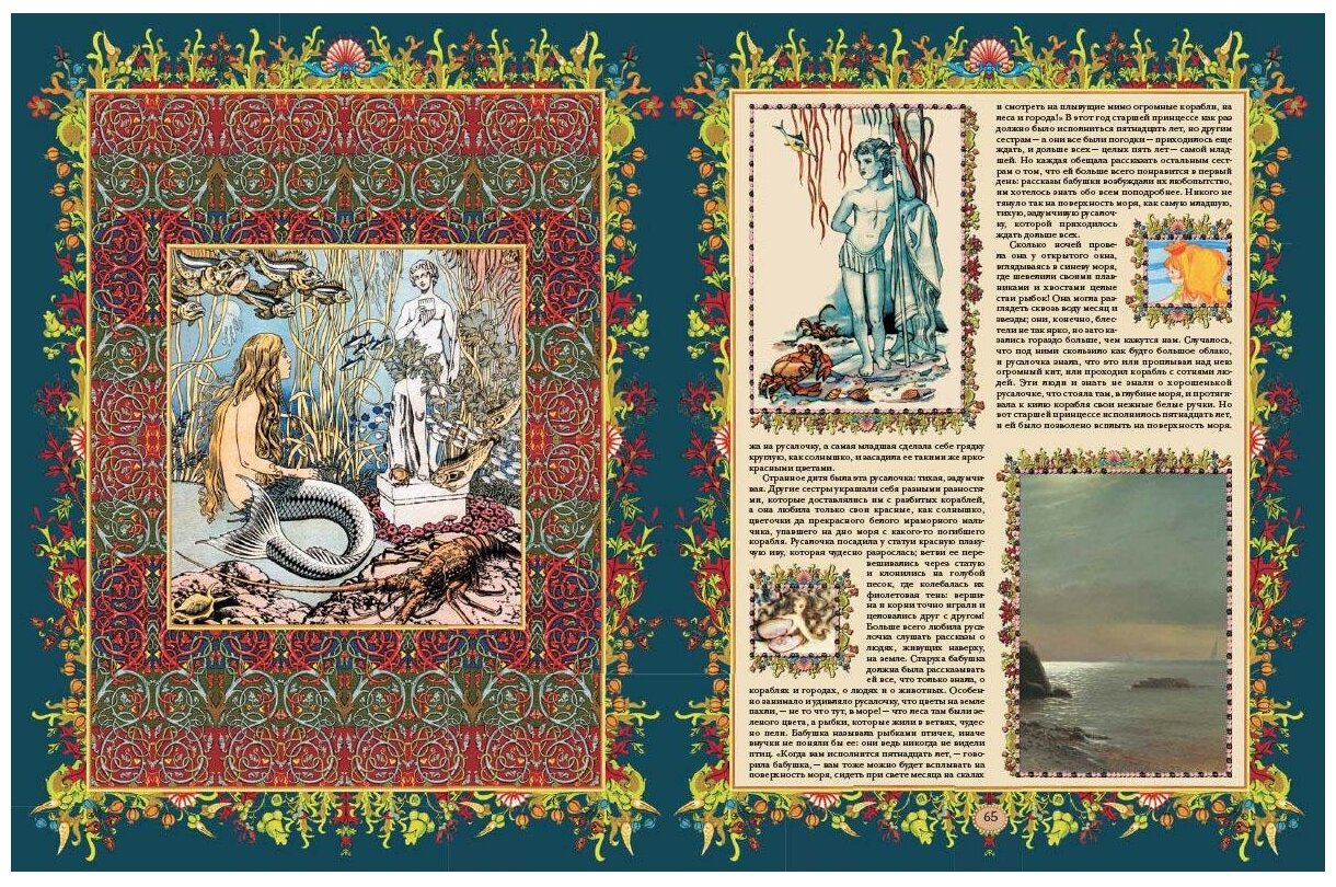Книга - фантастически роскошна!!! Я просмотрела иллюстрации и обалдела (почти в прямом смысле слова :) ), книга просто насыщена иллюстрациями до такой степени, что я бы даже сказала, она ими дышит. Каждая отдельная страница - это новый шедевр! Каждая новая сказка - это великое творение! Книга содержит в себе 154 сказки и истории, многие из них малоизвестные, а некоторые и вовсе никогда мне не встречались. По-моему, это самое полное собрание сочинений Ханса Кристиана Андерсона, более полное мне лично никогда не попадалось. Читая сказки Андерсона, слезы наворачиваются на глаза, но они настолько поучительные, что заставляют задуматься над несправедливостью, жестокостью, безразличностью, которые так часто окружают нас. Возможно, вся эта трагичность сказок отражает судьбу автора, а нам, читателям, дает возможность осознать многие вещи и просто стать добрее. Эта книга - вечная. Её можно передавать по-наследству своим детям и внукам. Получаешь огромное эстетическое удовольствия, имея такие книги в своей домашней библиотеке.