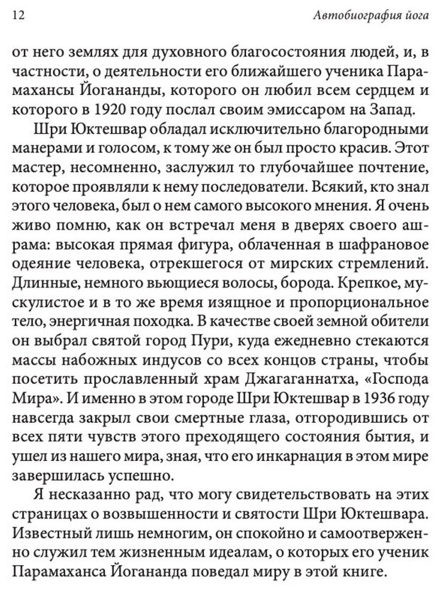 Важная духовная книга, которая станет источником духовного вдохновения человеку, который ищет свой путь к Богу. Очень интересная и захватывающая, основанная на событиях жизни настоящего Гуру, несущего в мир систему Крийя йоги, как способ достижения божественного в этой жизни. Интересное представление о земной жизни человеческой души, а также о ее жизни после выполнения ее миссии на нашей планете.