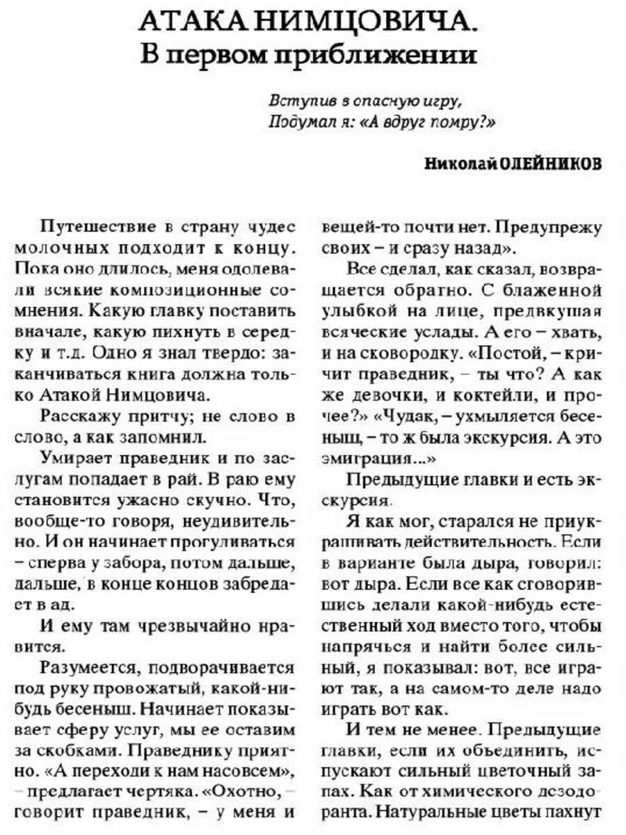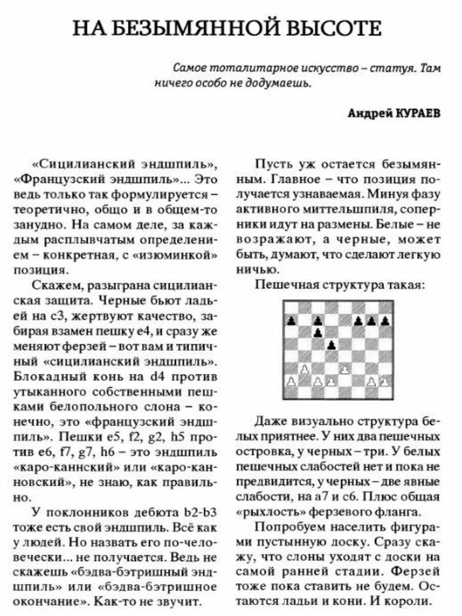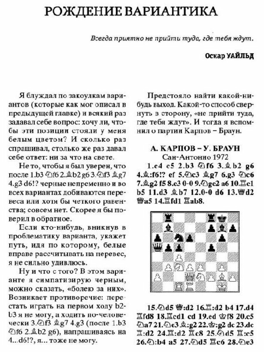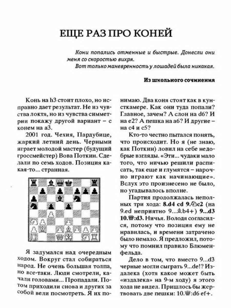 .Красивая идея, приближающая шахматы к искусству. Глубокий анализ, ставящий игру вровень с наукой. Но прежде всего — изумление! Изумление перед той жизнью, что, зарождаясь на расчерченной в черно-белую клетку доске, уводит нас далеко от нее. И не торопит к возврату.