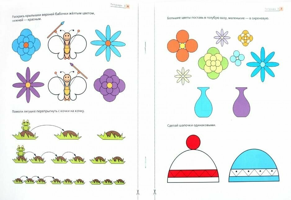 Задания тетради позволяют сформировать у ребенка понятие "один - много", закрепить представление о расположении предметов в пространстве и активизировать в речи предлоги "над", "под", "сверху", "снизу", "за", "перед"; способствуют развитию мелкой моторики рук, воображения, внимания и логического мышления.