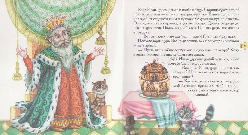 А тексты сказок видимо не измененные (хотя царевна-лягушка хоть и совсем немного, но сокращена). Даже и не знаешь как эту народную мудрость ребенку объяснять, совсем не в духе современных веяний. Судите сами: